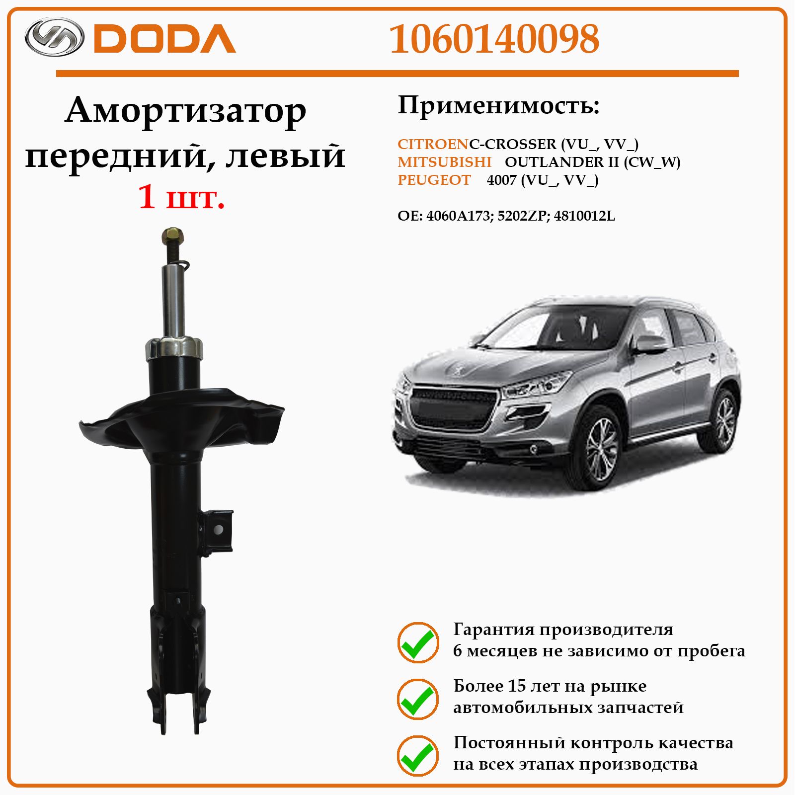 Амортизатор передний на левую сторону DODA 1060140098 для автомобилей Ситроен С-кросс, Мицубиши Оутлендер, Пежо 4007. Этот амортизатор гарантирует отличную управляемость и комфорт при движении, что особенно важно для повседневных поездок и длительных путешествий.