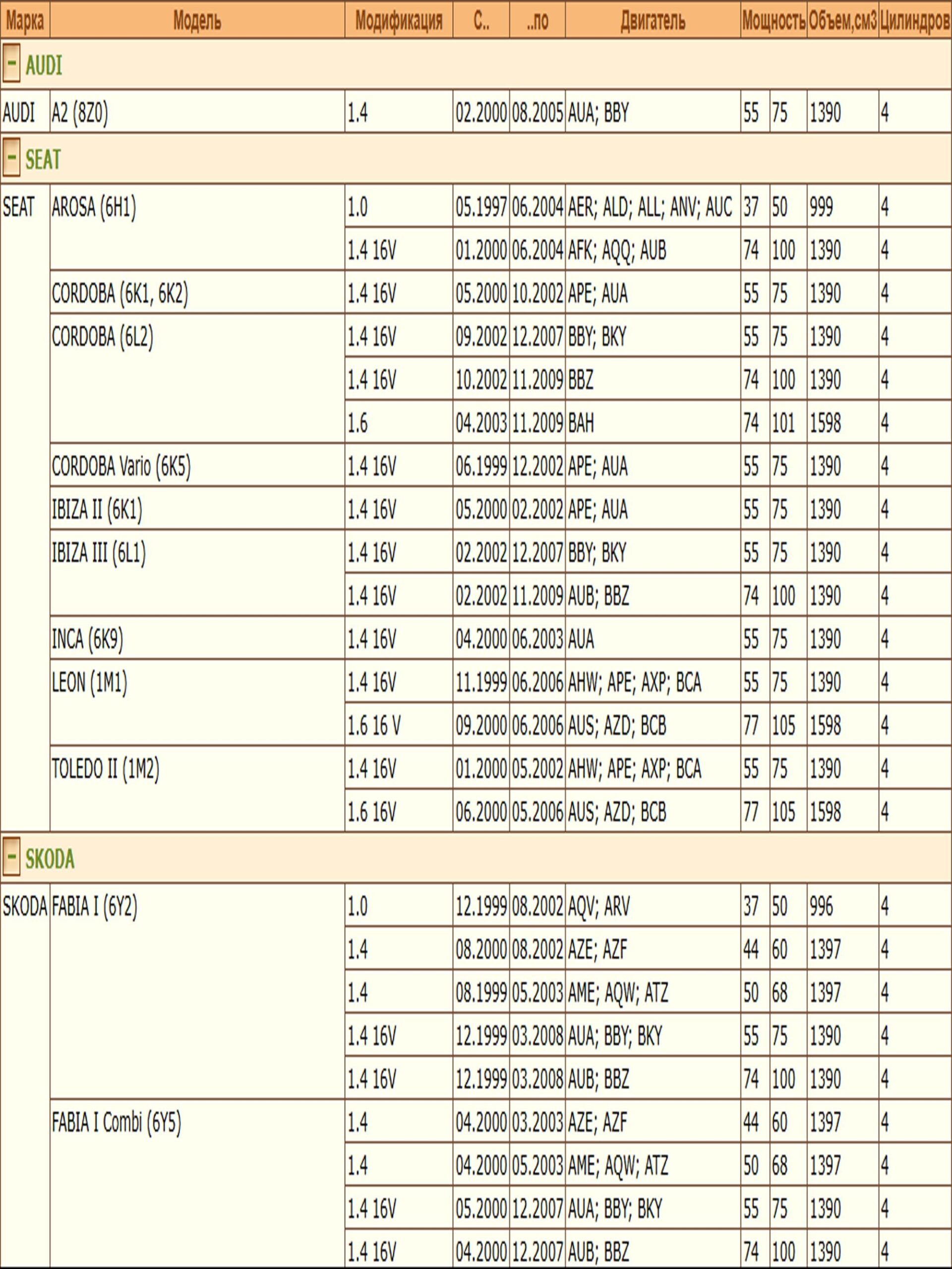 ✔ SEAT CORDOBA (6K1, 6K2)
