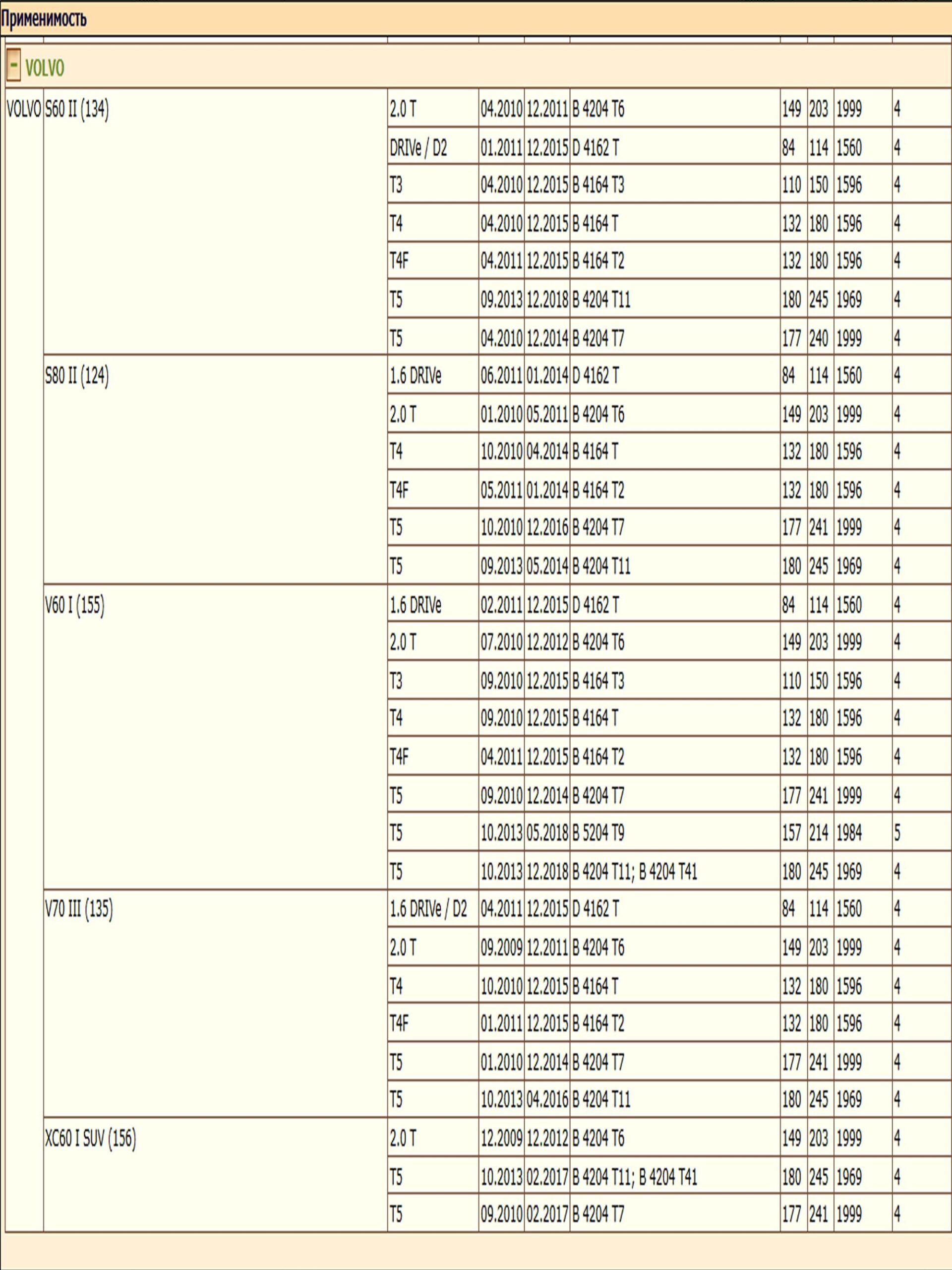 ✔ VOLVO S80 II (124); V60 I (155)