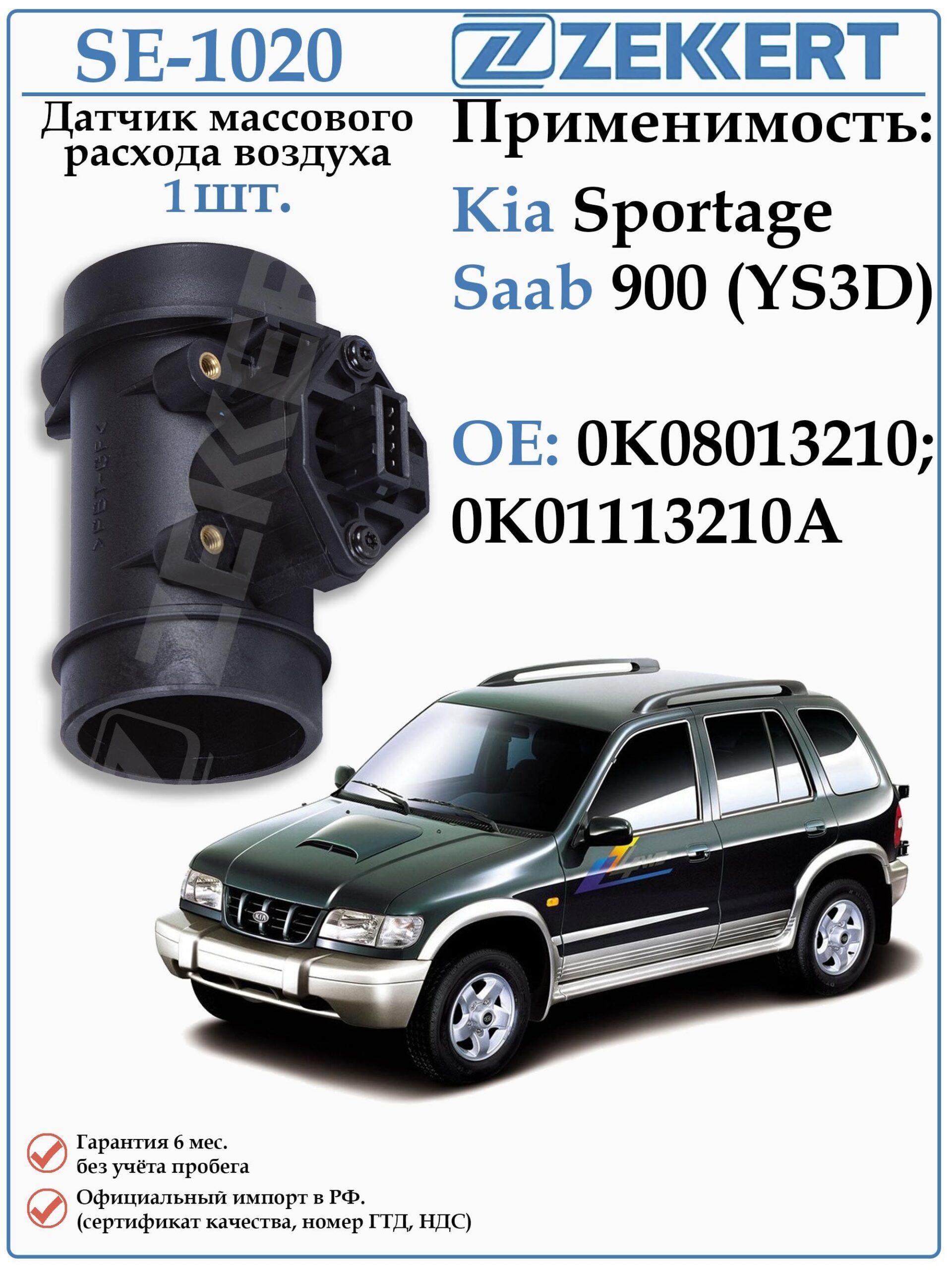 Датчик массового расхода воздуха (ДМРВ) для Киа Спортаж первого поколения, СААБ 900 ZEKKERT SE-1020