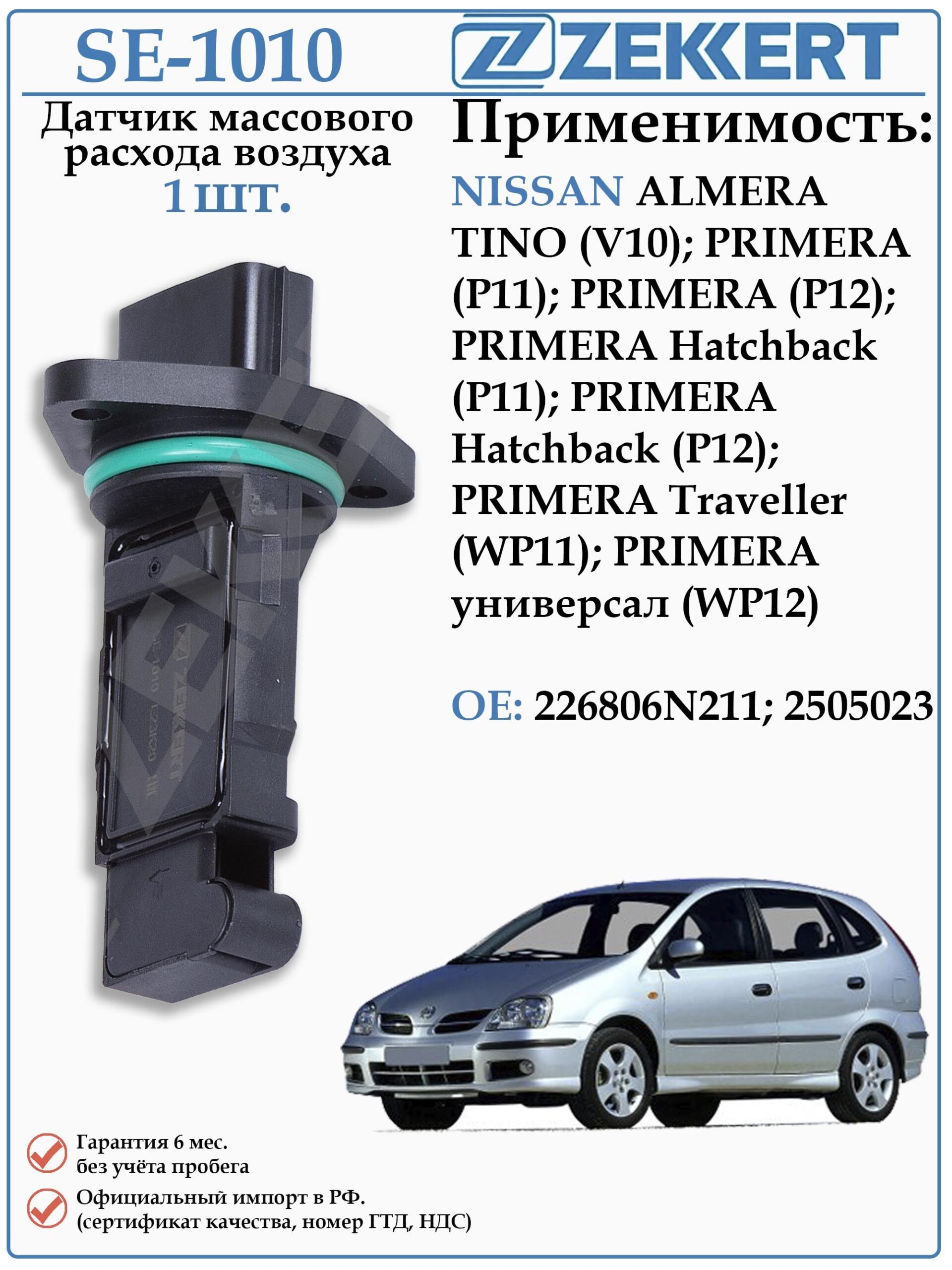 Датчик массового расхода воздуха (ДМРВ) для Ниссан Альмера Тино, Ниссан Премьера ZEKKERT SE-1010