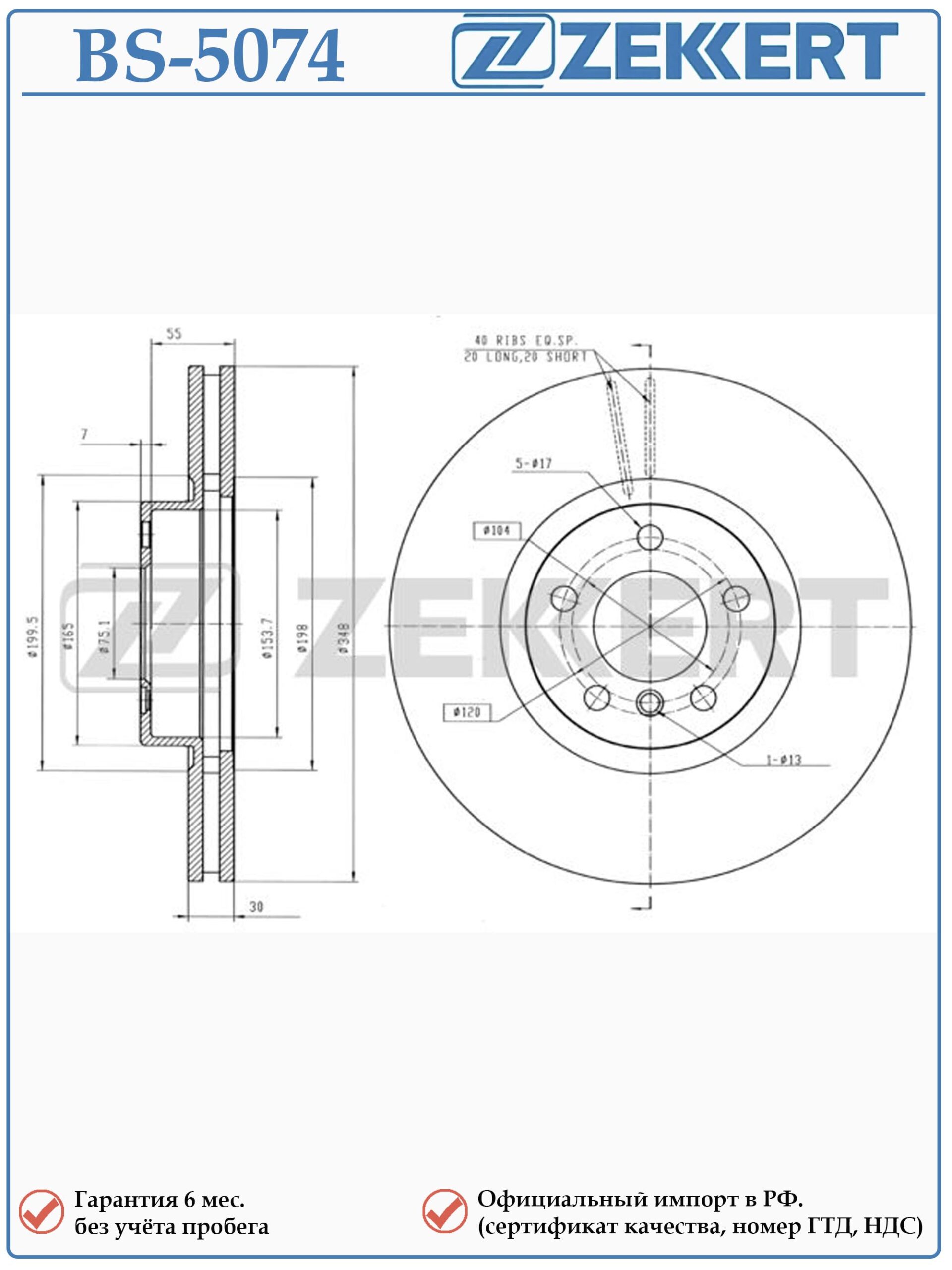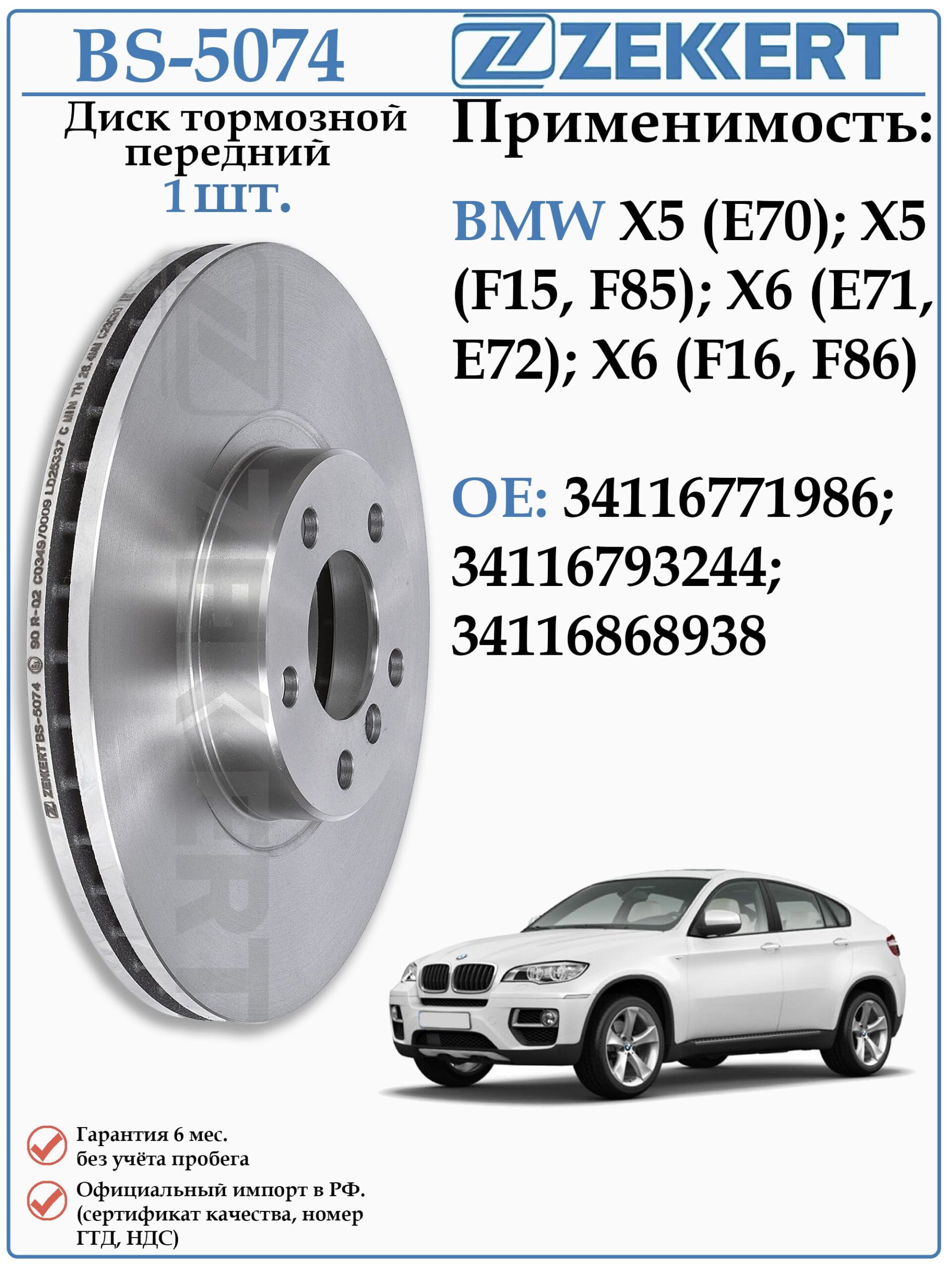 Будьте первым, кто оставил отзыв на «Диск тормозной передний БМВ Х5, Х6 ZEKKERT BS-5074»