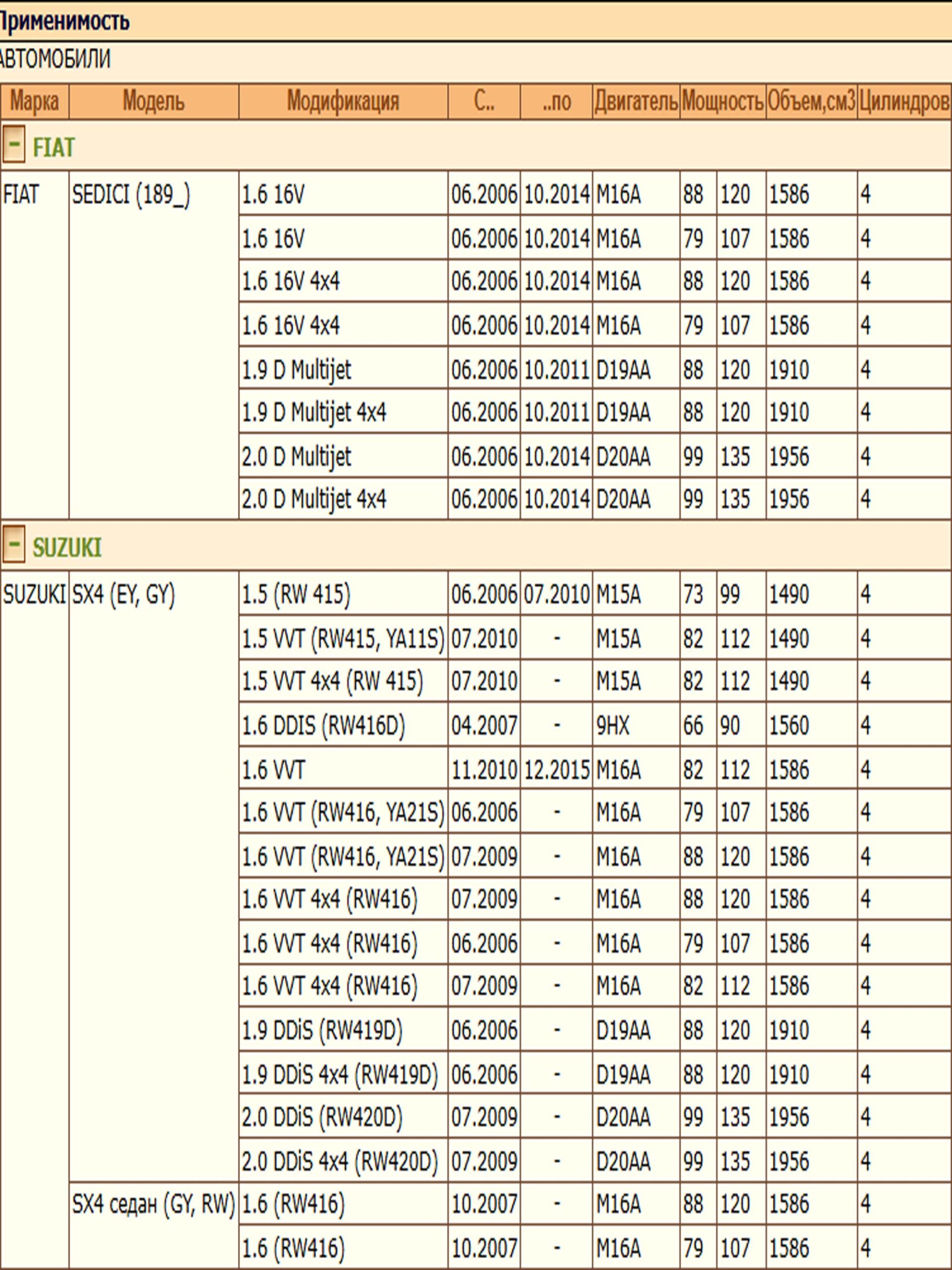 ✔ SUZUKI SX4 (EY, GY) (GY, RW)