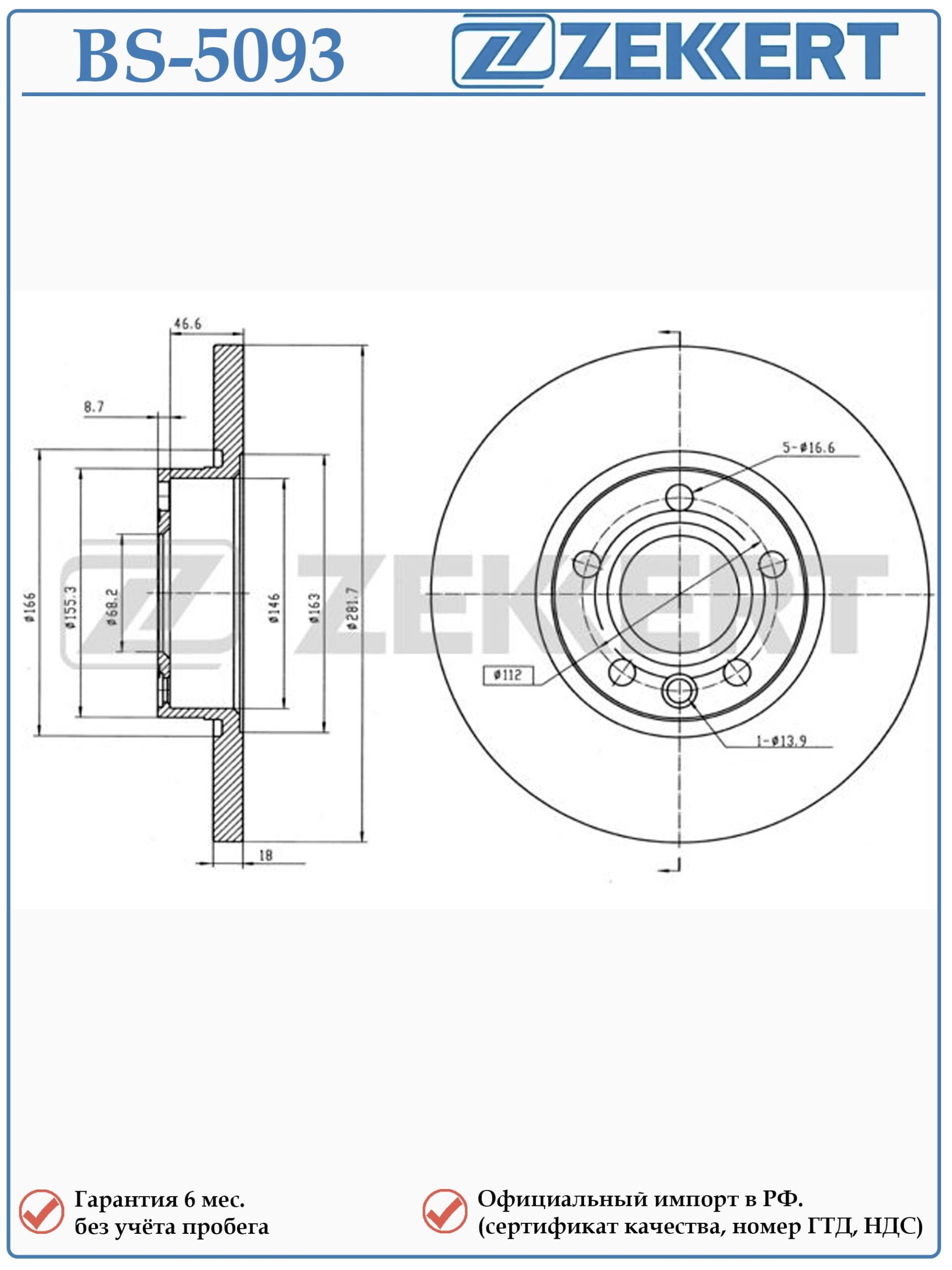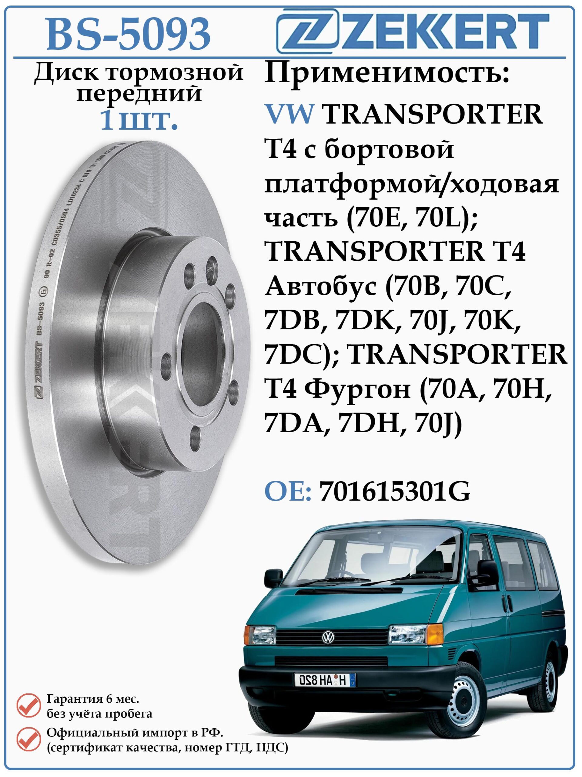 Диск тормозной не вентилируемый передний BS-5093 для Фольксваген Транспортер Т4