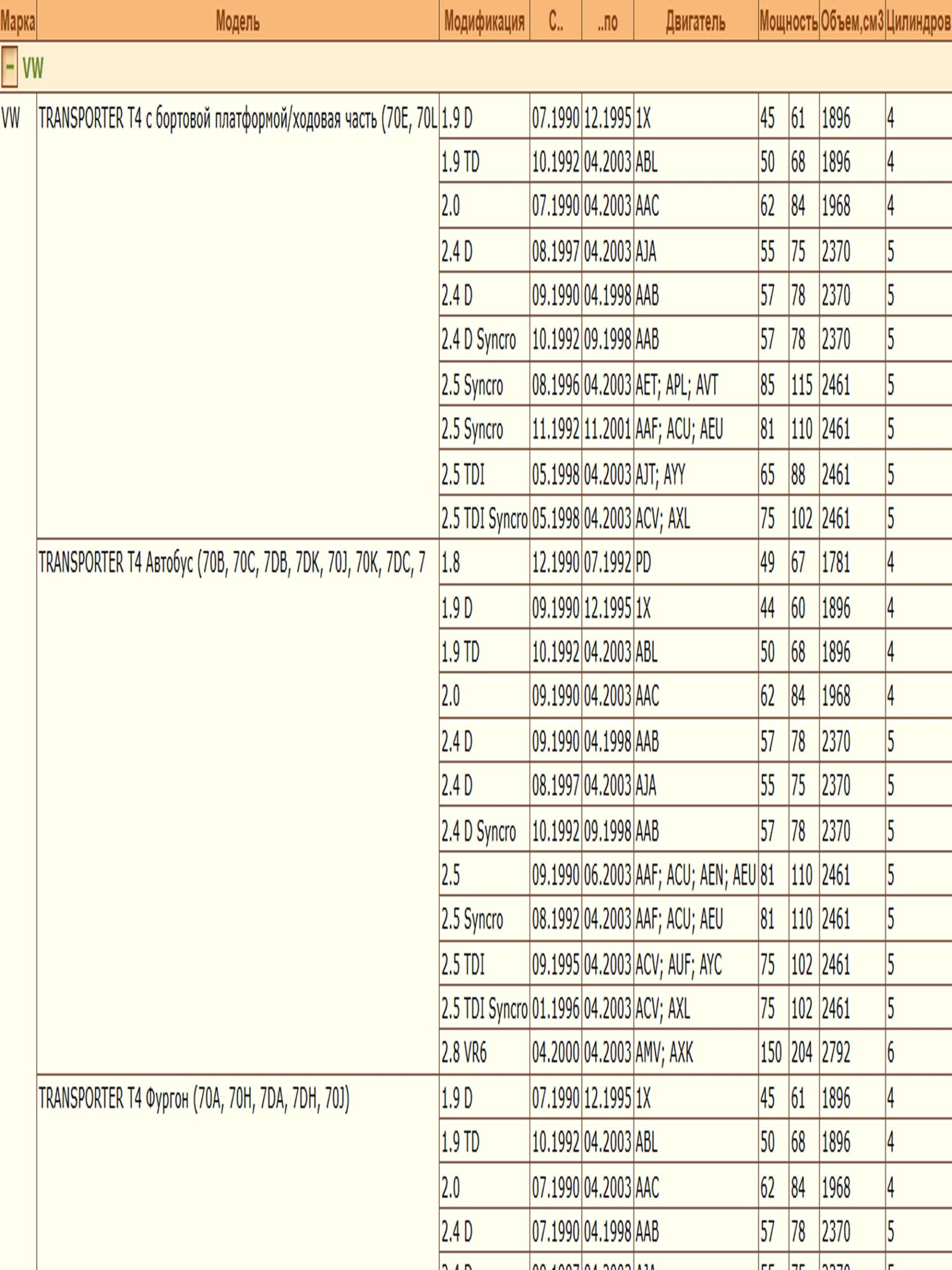 ✔VW TRANSPORTER T4 Автобус (70B, 70C, 7DB, 7DK, 70J, 70K, 7DC)