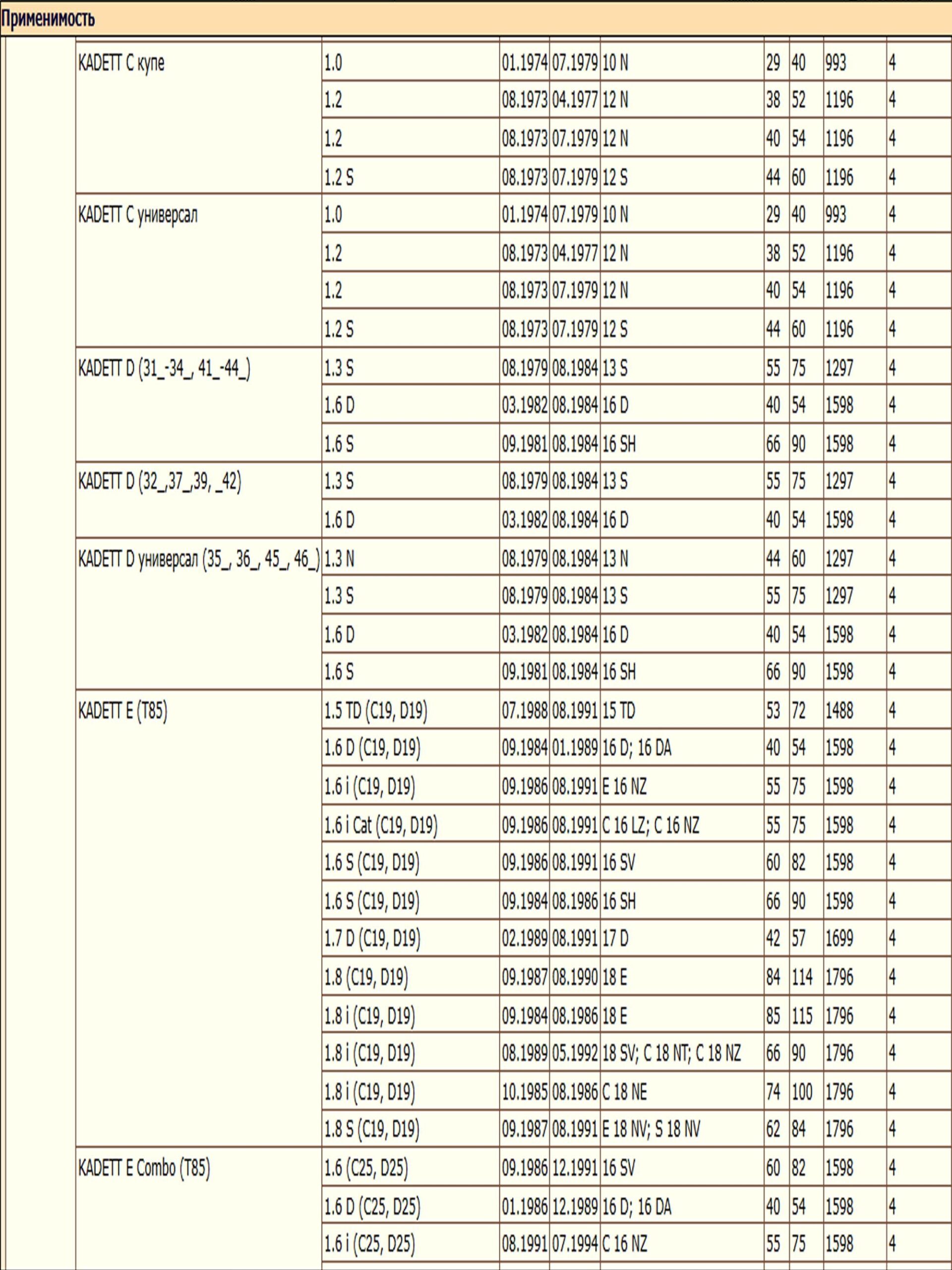 ✔ OPEL KADETT D (31_-34_, 41_-44_) (32_,37_,39, _42) (35_, 36_, 45_, 46_)