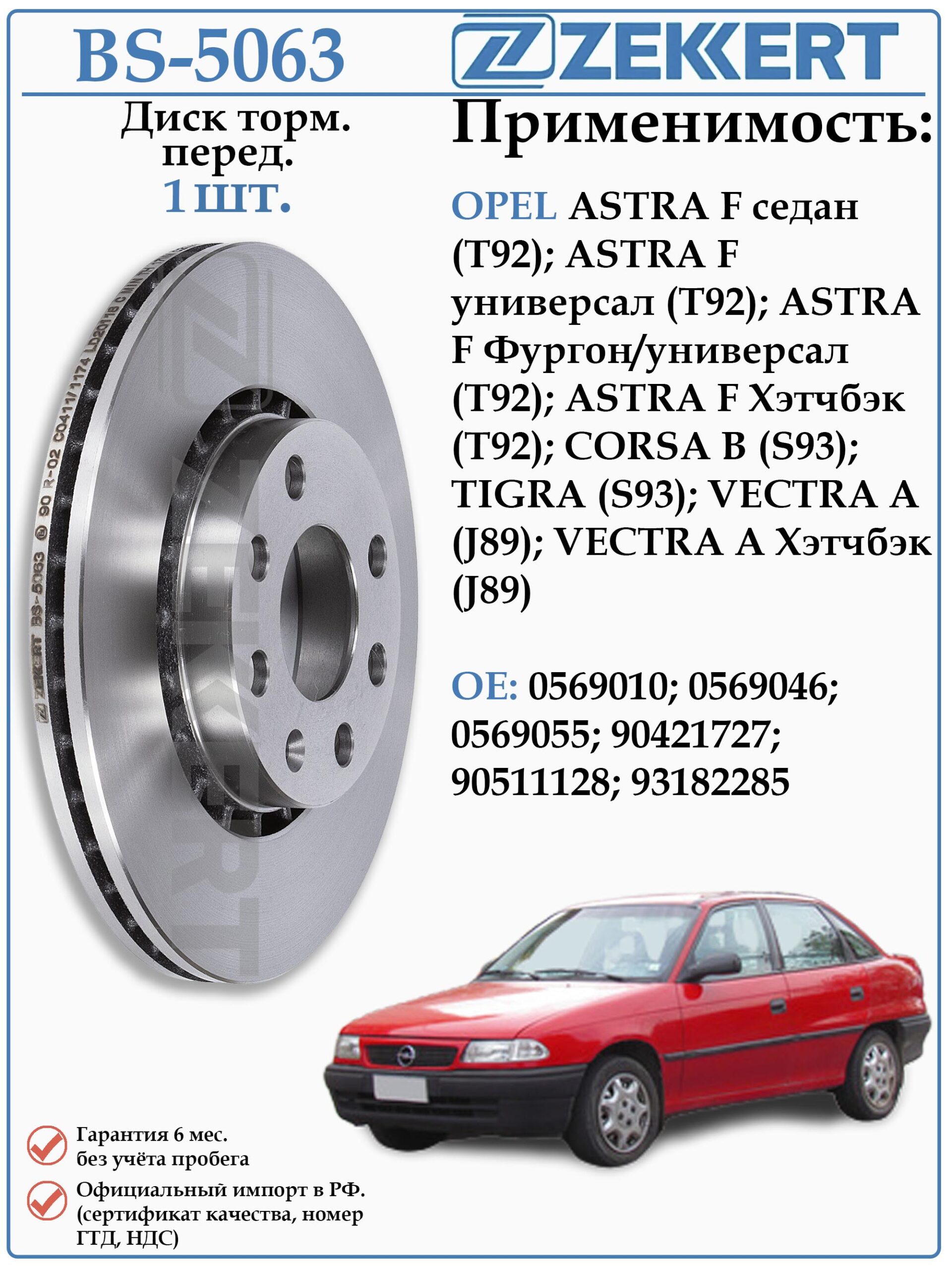 Диск тормозной вентилируемый передний BS-5063 для автомобилей Опель Астра, Вектра, Тигра, Корса