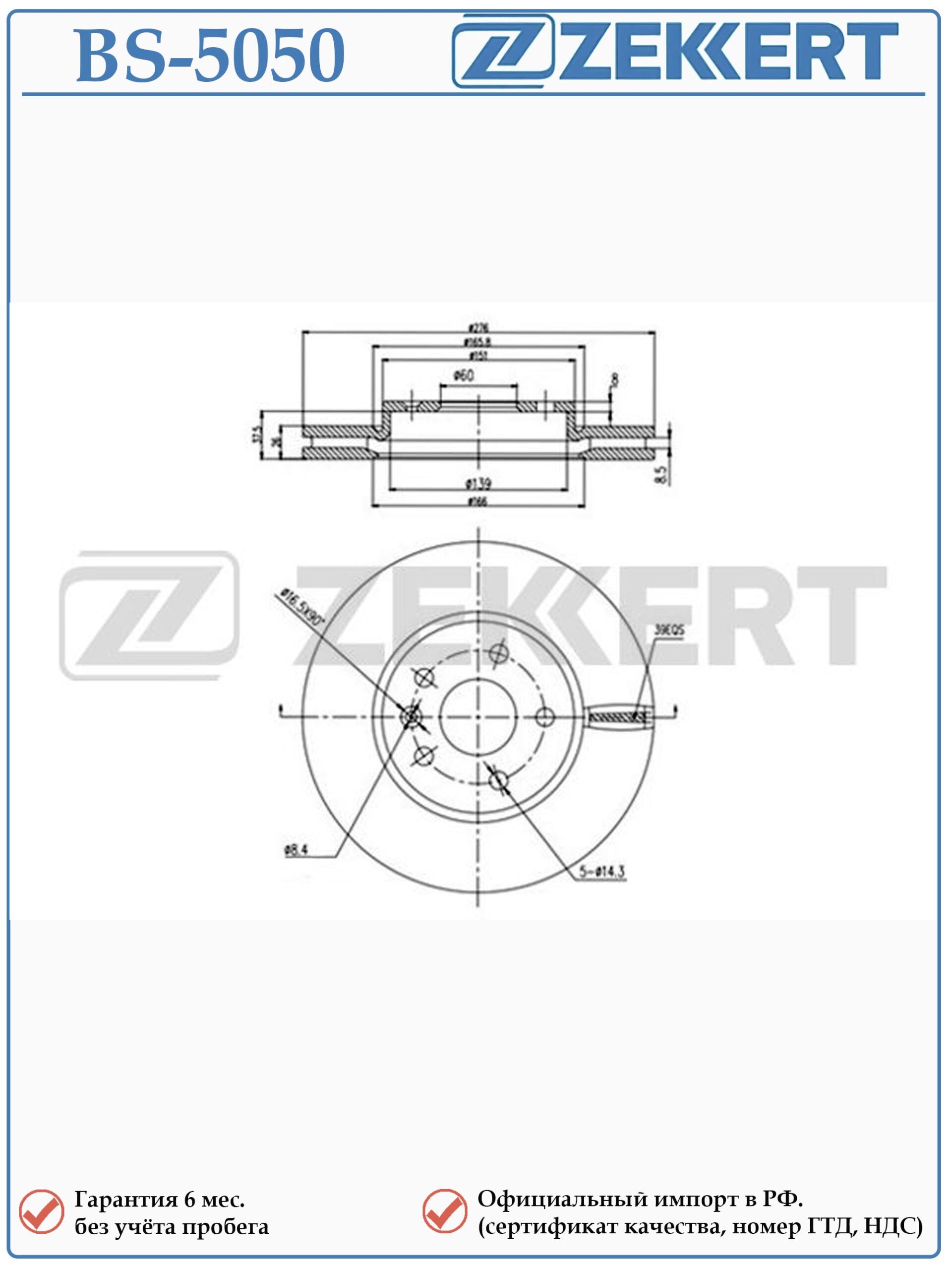 Будьте первым, кто оставил отзыв на “Диск тормозной передний Шевроле Авео, Круз, Опель Астра ZEKKERT BS-5050”