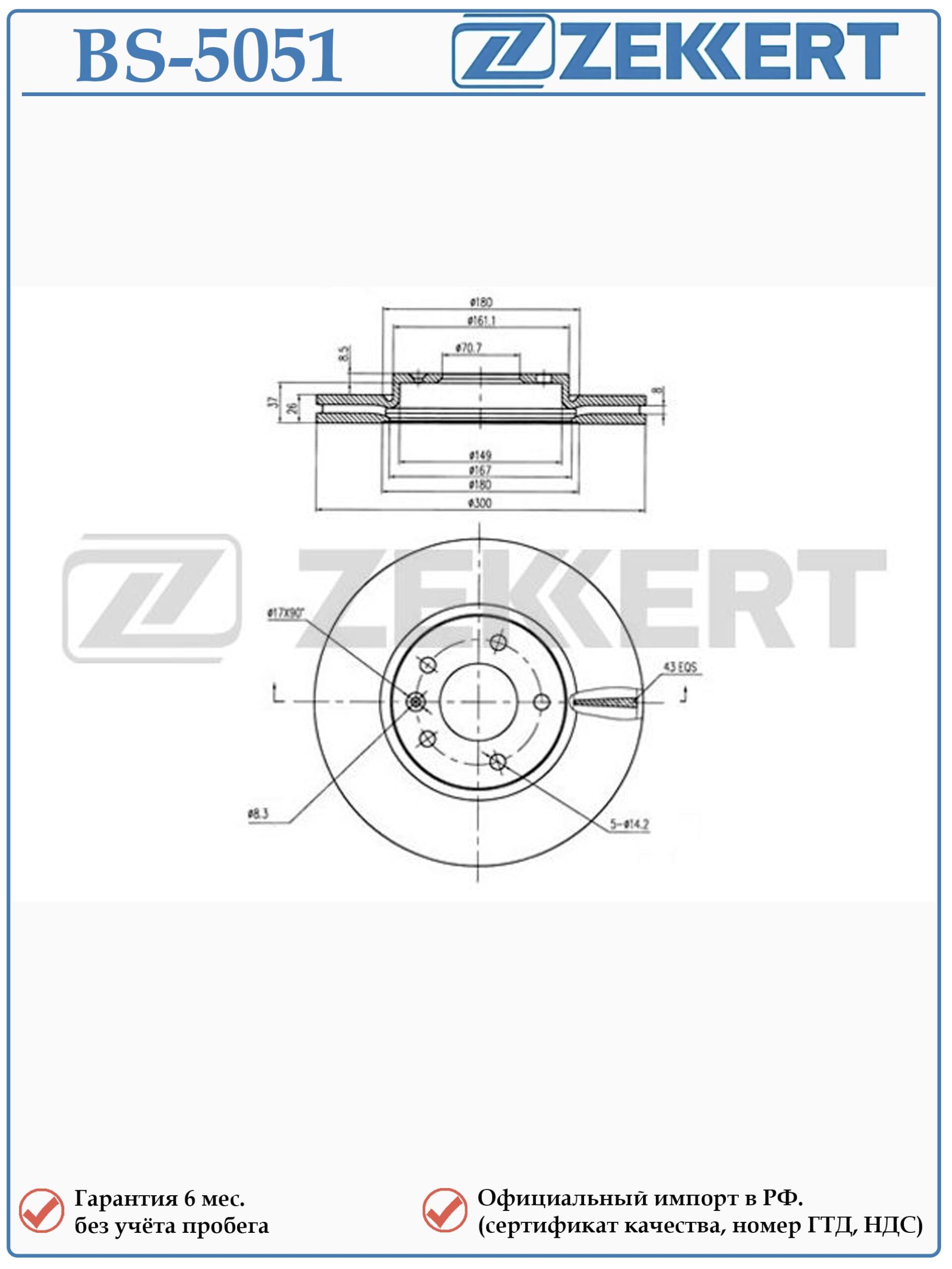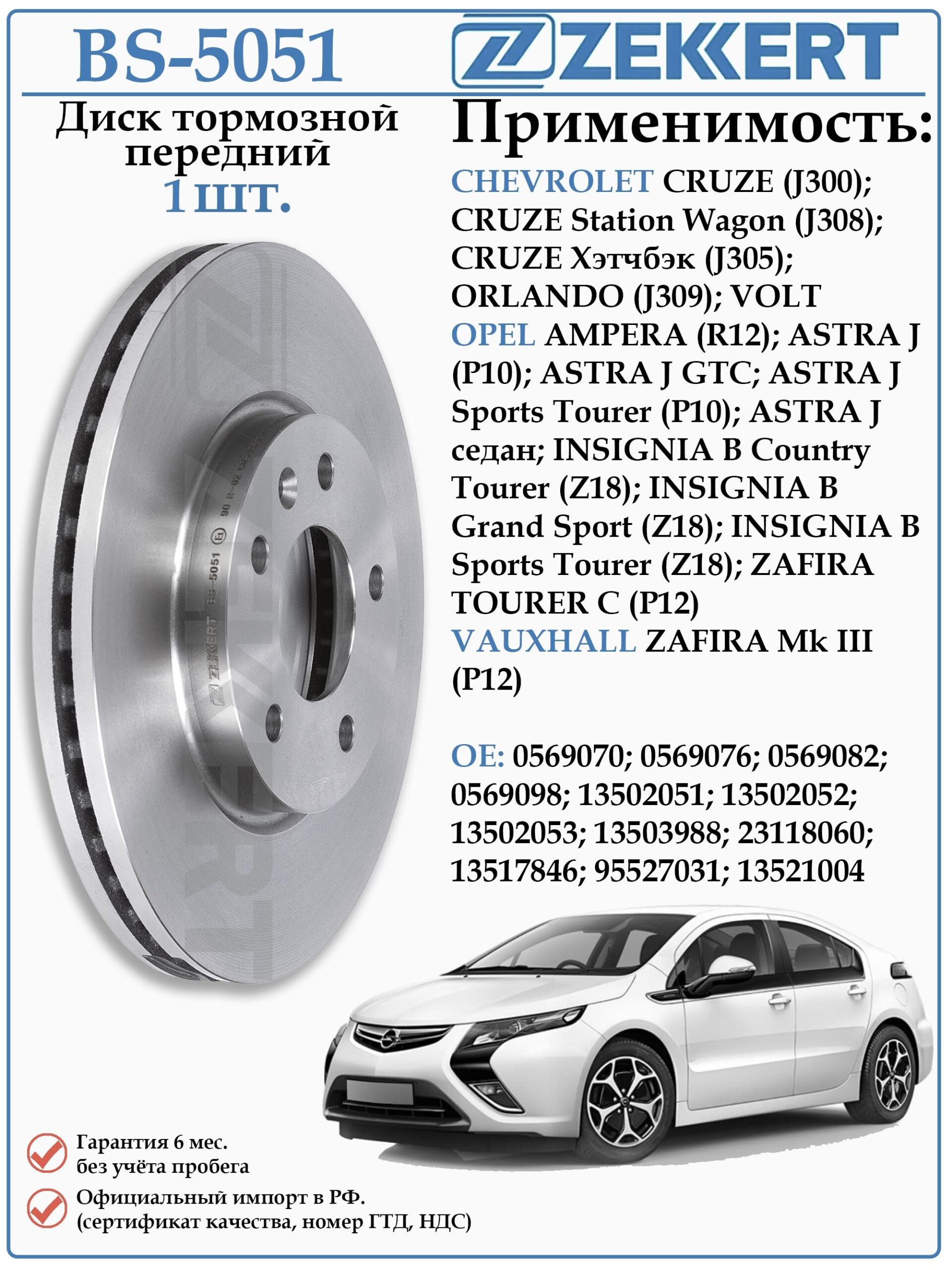 Диск тормозной передний Шевроле Круз, Опель Астра, Инсигния ZEKKERT BS-5051