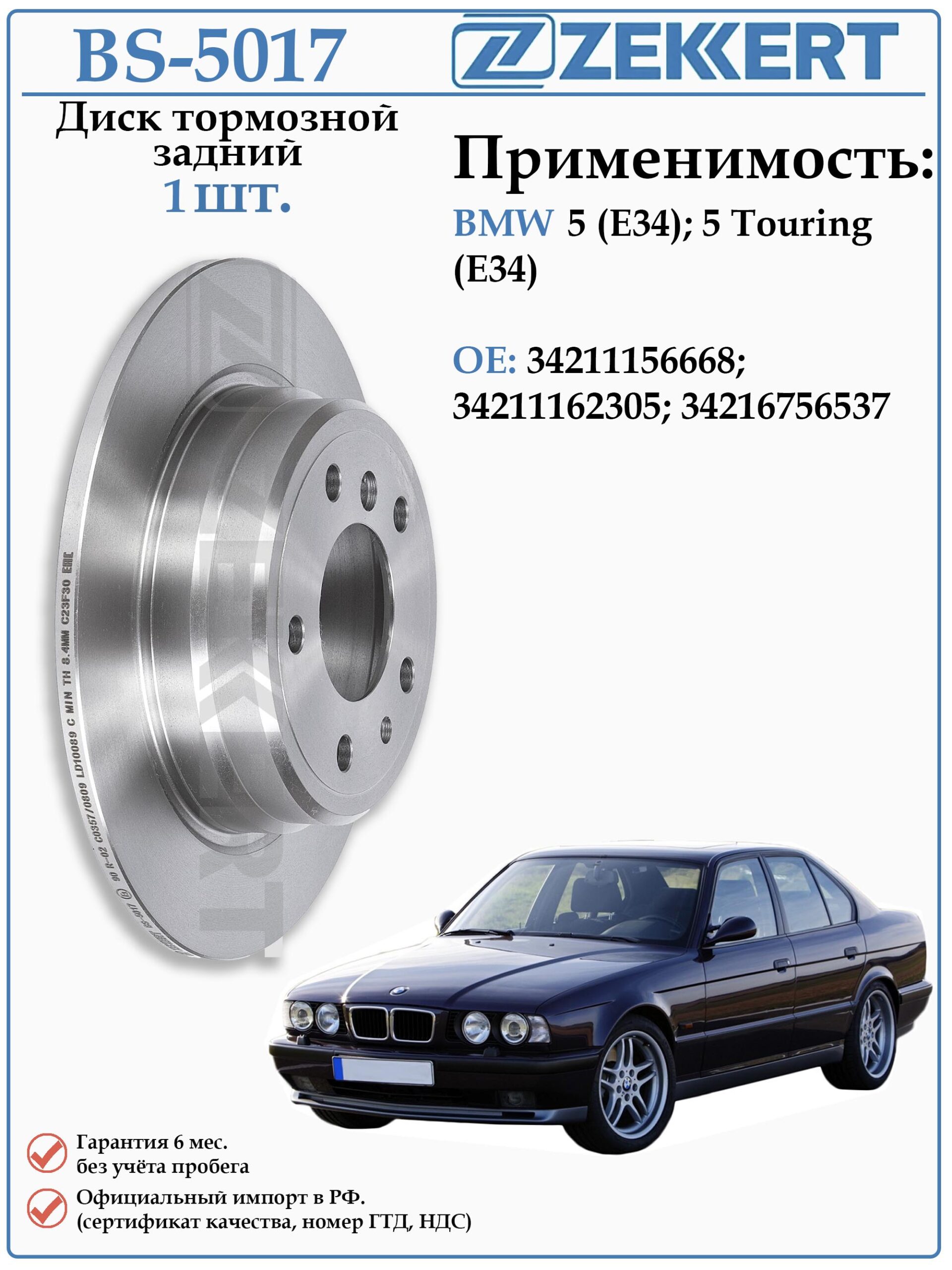 Диск тормозной цельный задний BS-5017 для автомобилей Бмв 5 серии в кузове Е34