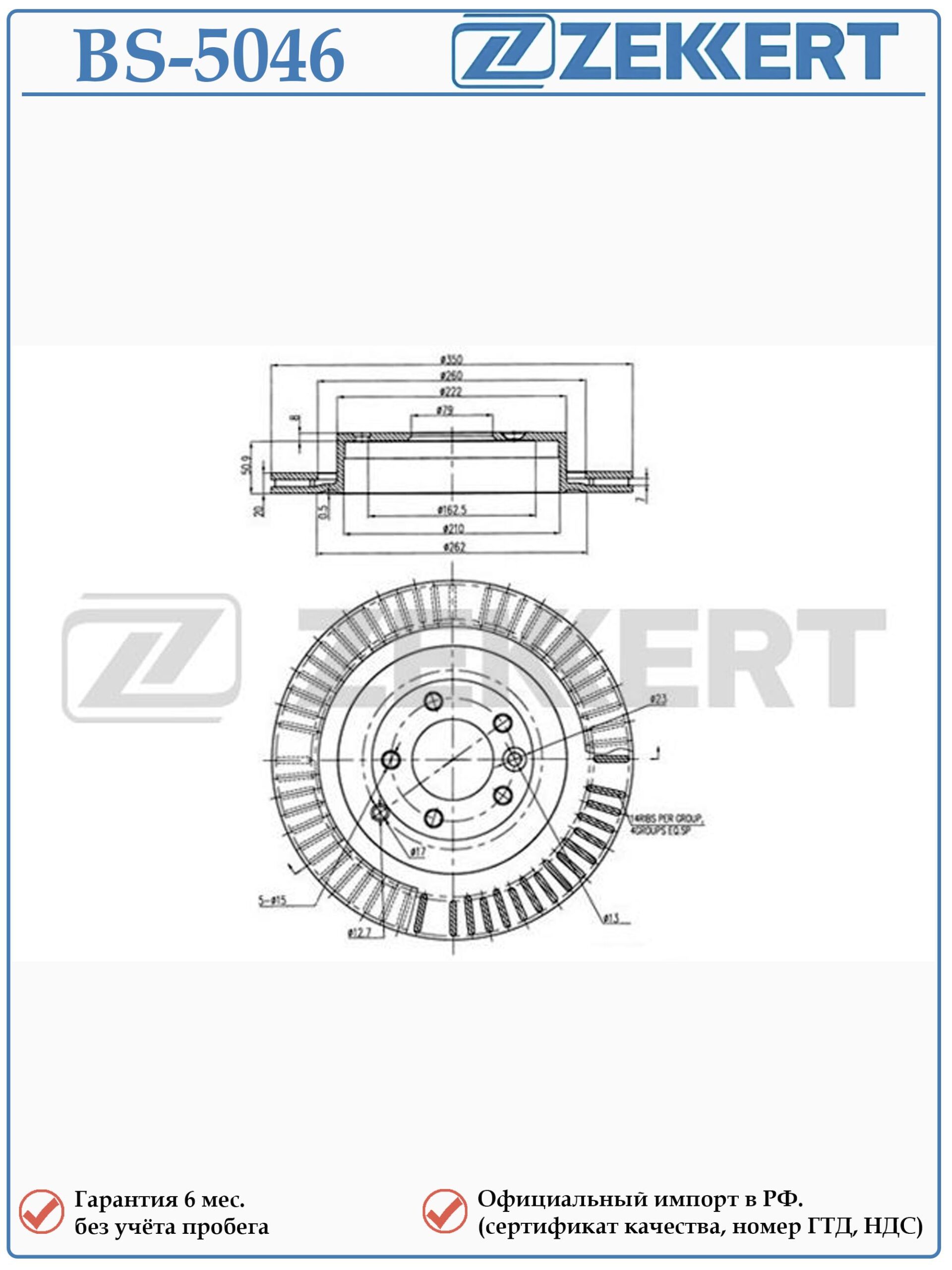 Диск тормозной вентилируемый задний BS-5046 для Лэнд Ровер Дискавери 4, Рэнж Ровер Спорт 1