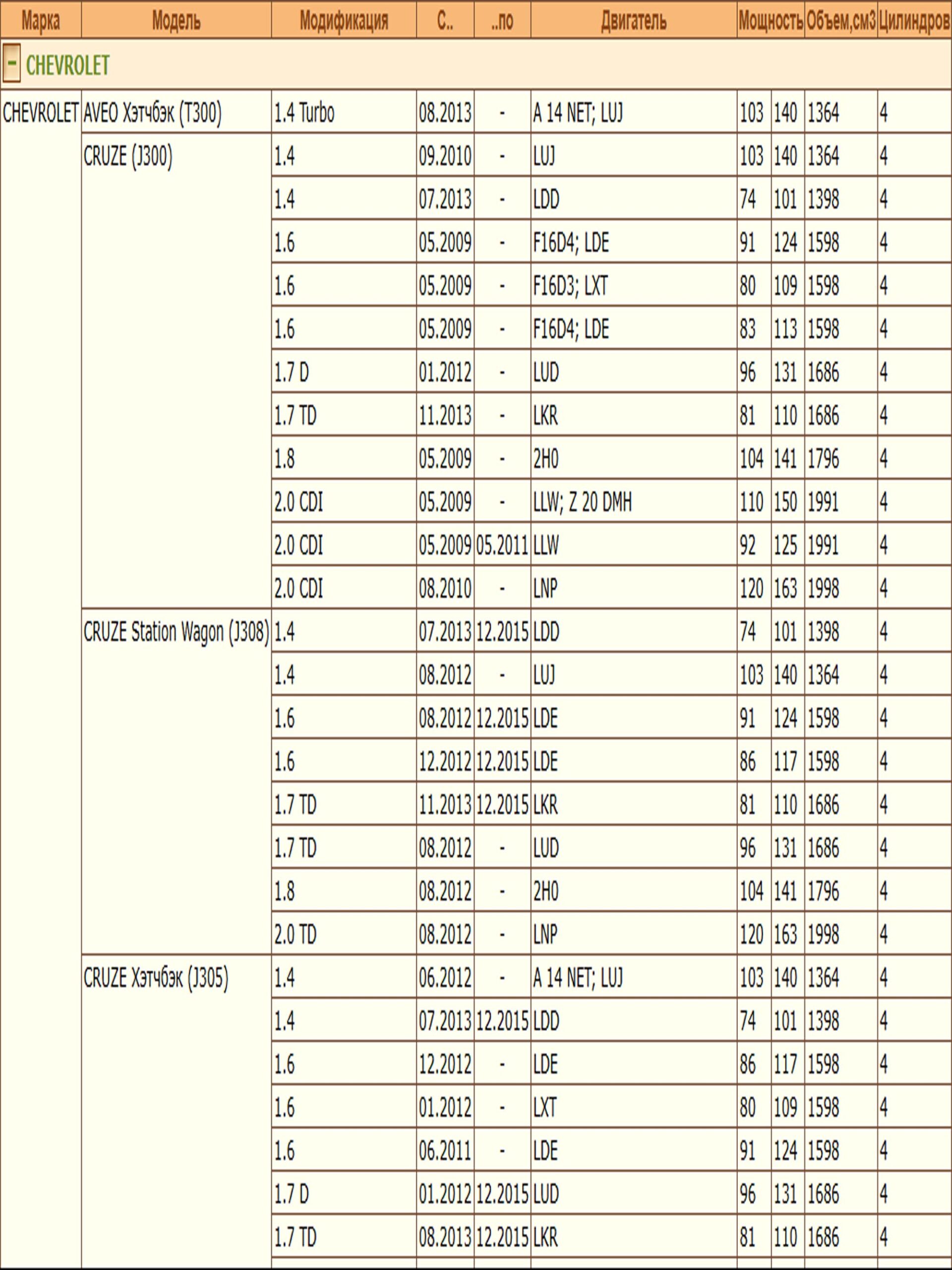 ✔ CHEVROLET CRUZE (J300) (J308) (J305)