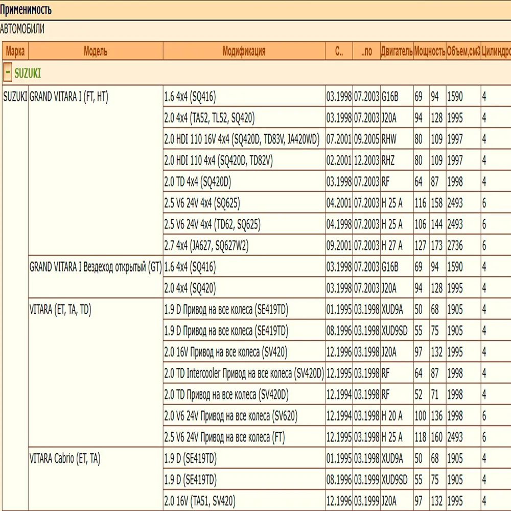 ✔ SUZUKI GRAND VITARA I (FT, HT) (GT)