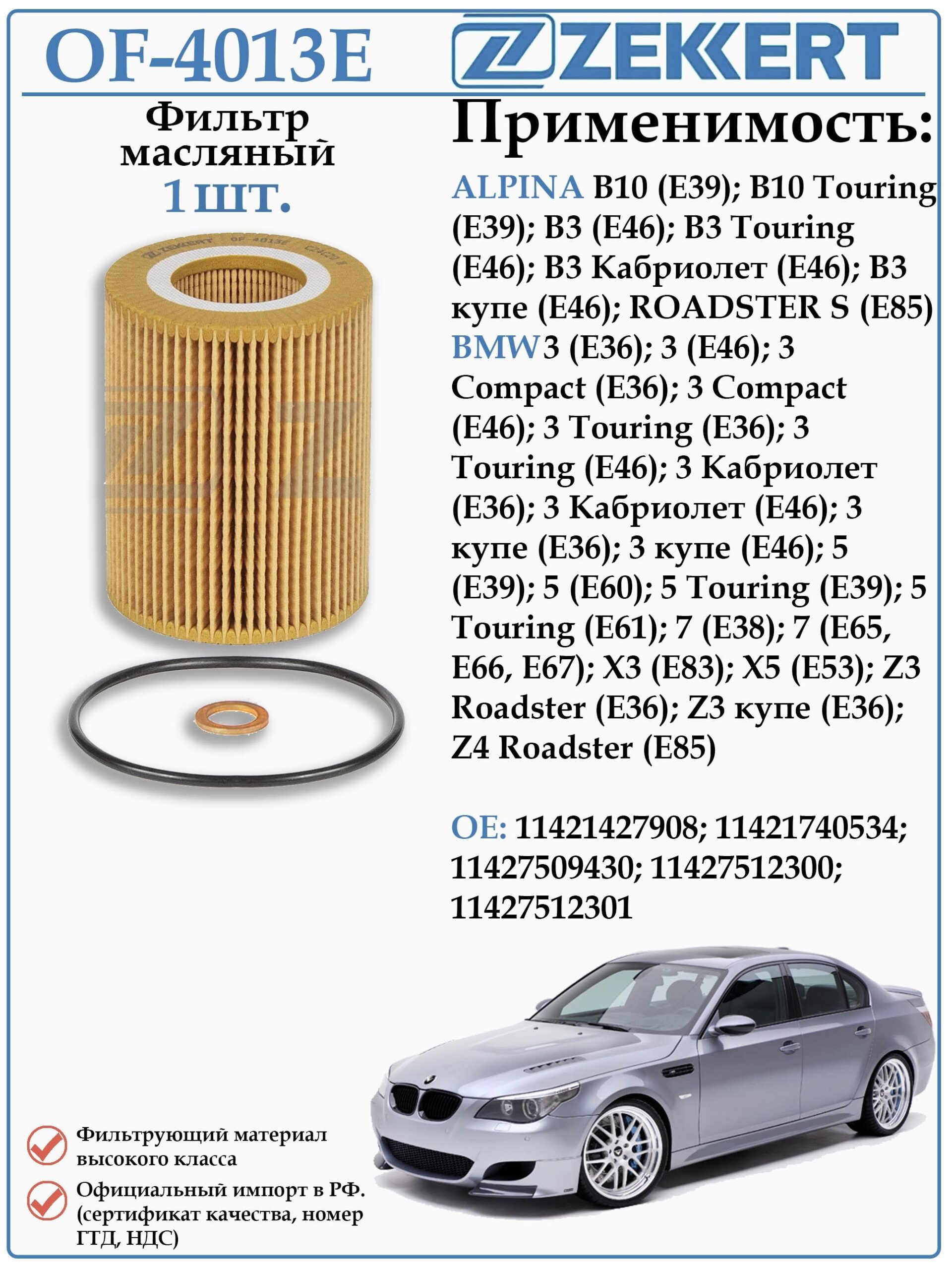 Масляный фильтр ZEKKERT OF-4013E, предназначенный для автомобилей БМВ, Альпина