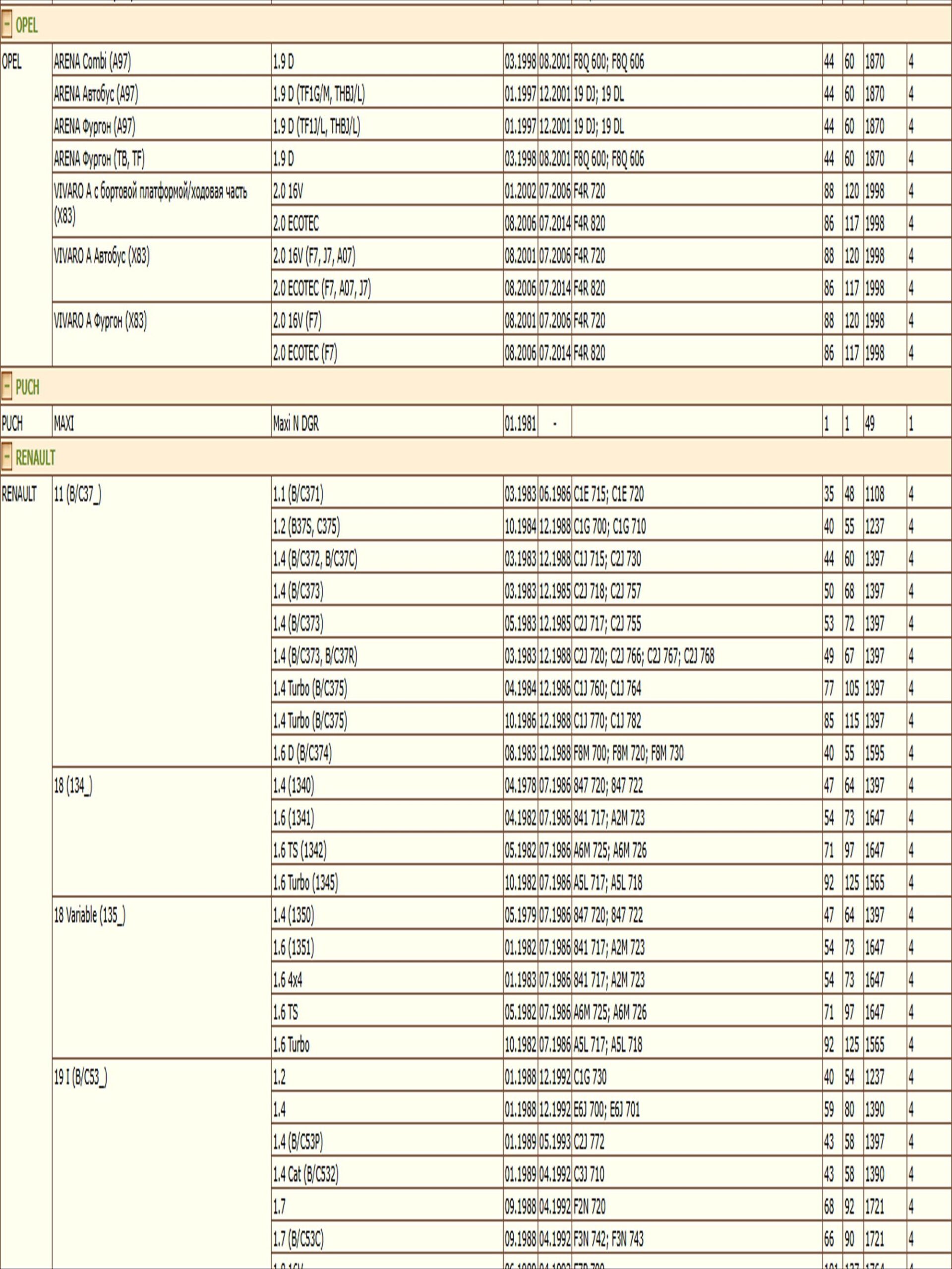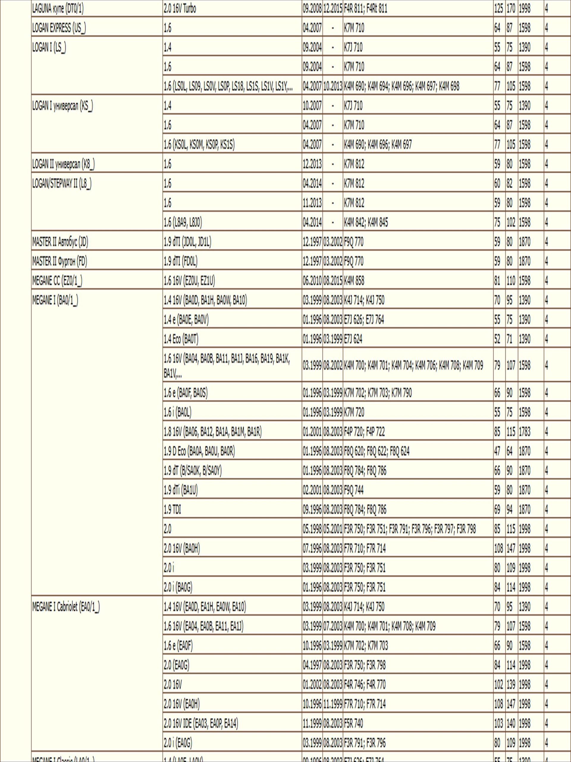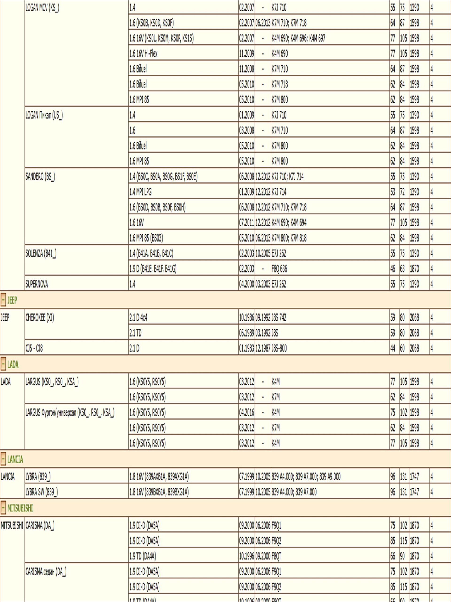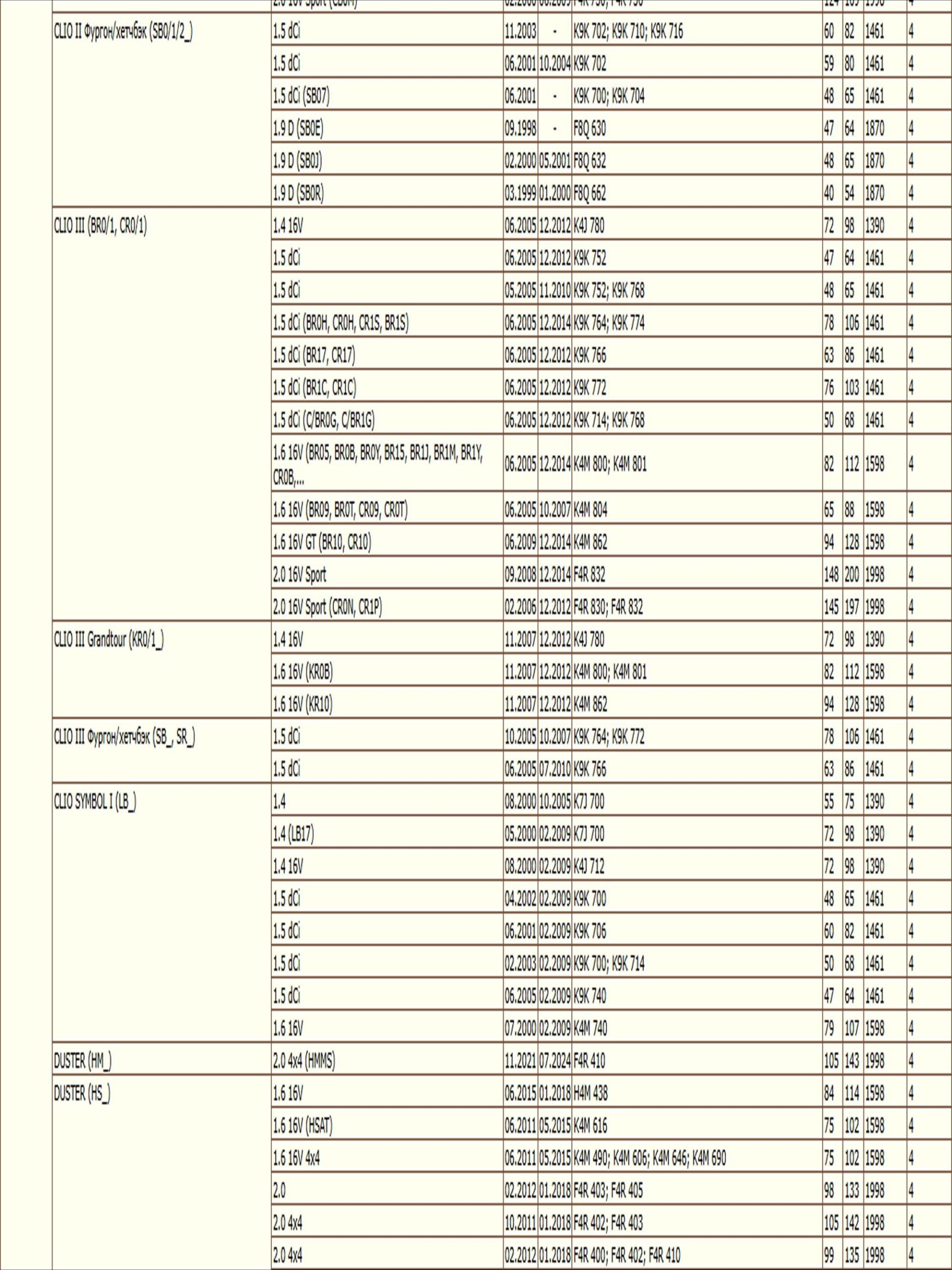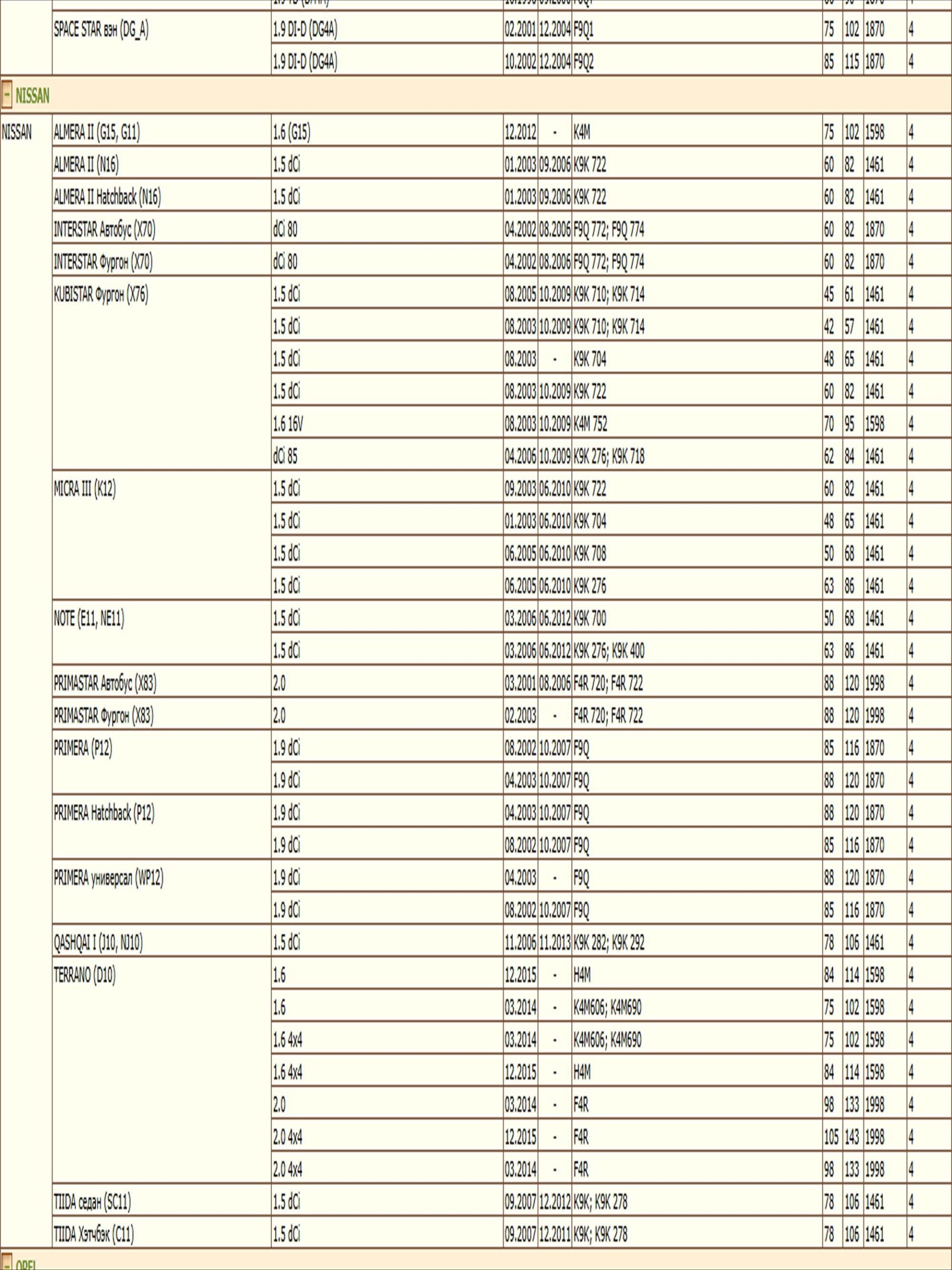ОЕ: 5006227; 5013388; 5013389; 5016714; 5016715; 5016785; 5016956; 5017317; 5017319; AM1514302; M851139; M852065; M883804; 8200033468; 1520800Q0F; 1520800Q0H; 1520800QAB; 1520800QAC; 15208BN700; 6439354; 4402718; 4403019; 4449274; 7700033408; 7700073302; 7700107905; 7700110796; 7700272523; 7700272902; 7700272903; 7700272982; 7700274177; 7700676302; 7700695801; 7700695804; 7700727401; 7700727478; 7700727479; 7700727480; 7700728310; 7700730077; 7700734945; 7700734957; 7700735917; 7700737991; 7700744879; 7700745708; 7700748326; 7700854776; 7700854852; 7700855853; 7700856114; 7700866099; 7700869390; 7700871919; 7700873583; 7700873603; 7701043377; 7701349452; 7701349725; 7701349752; 7701727480; 7702144083; 7708715147; 7711945897; 8200033408; 8200768913; 8200867976; 8933004195; 8983501900; 8983601900; 5000791145; 1651084CT0; 1651084CT0000; 73500506; 9111019; 93156290; 93156540; 93198598; MLS000602; MLS000462A; 1109A4; 1109A5; 02961170