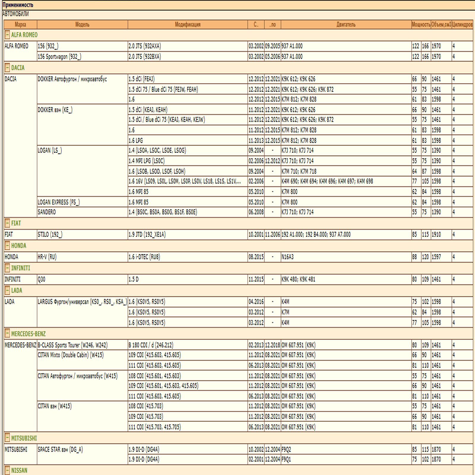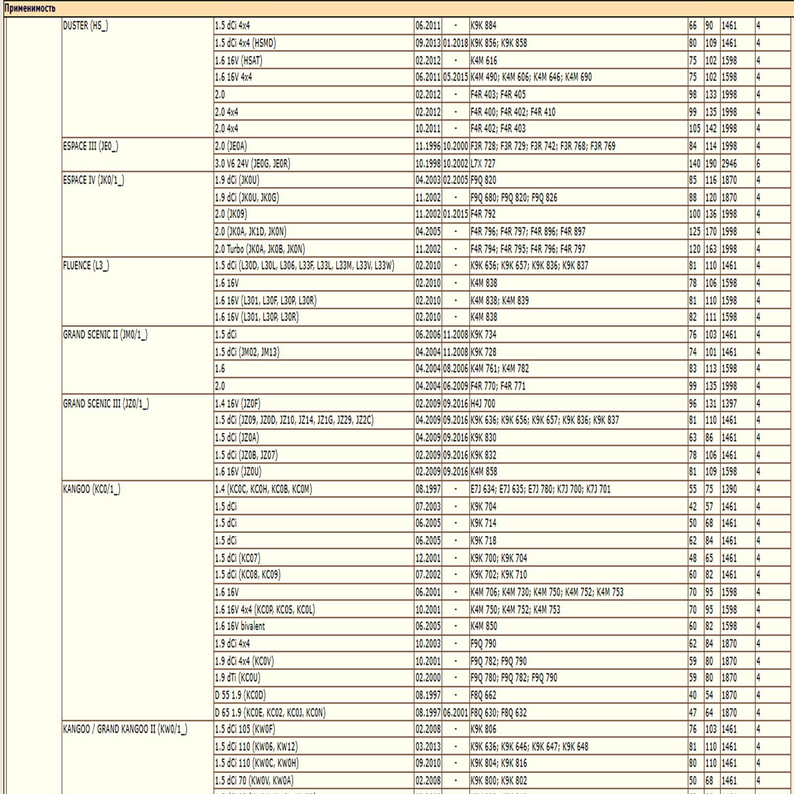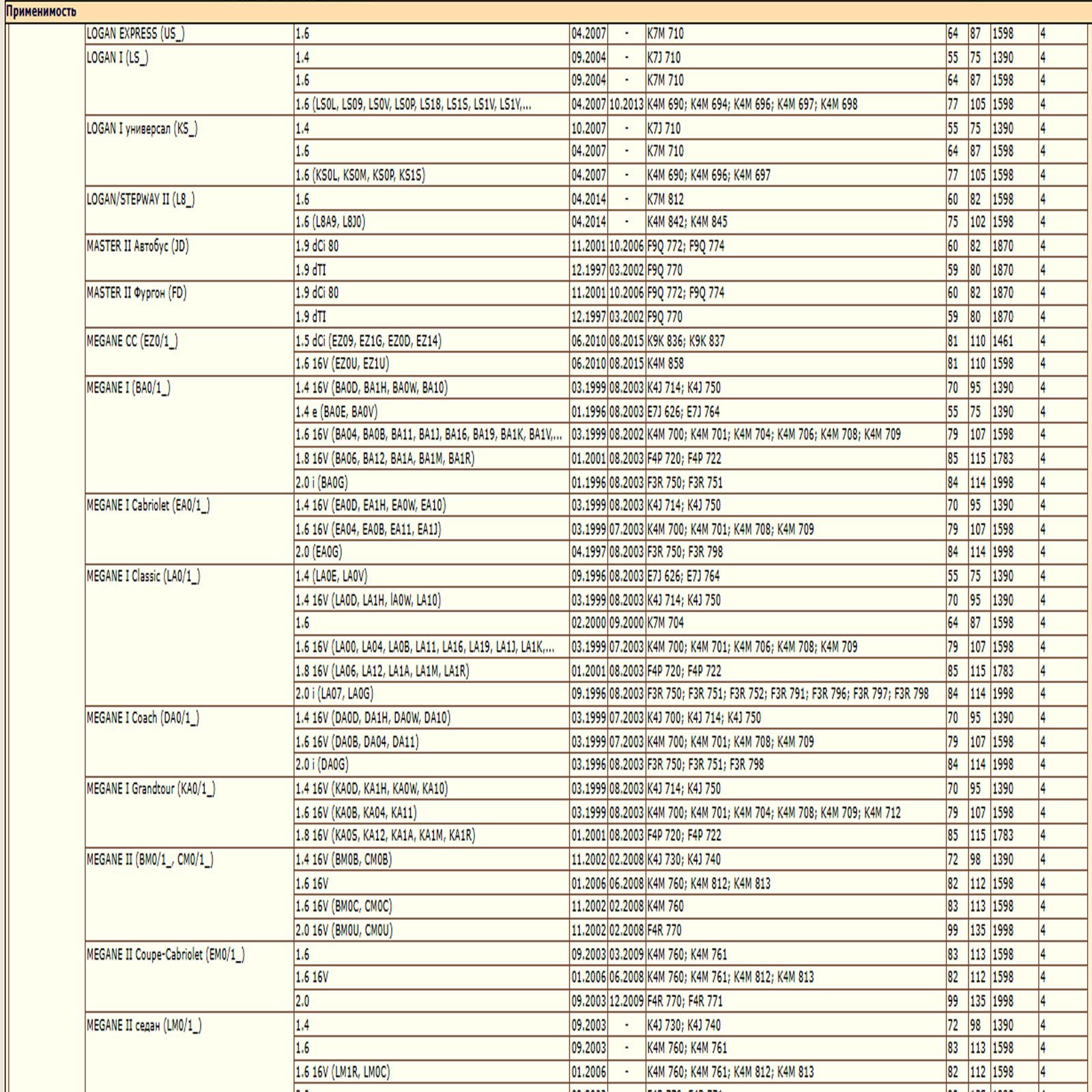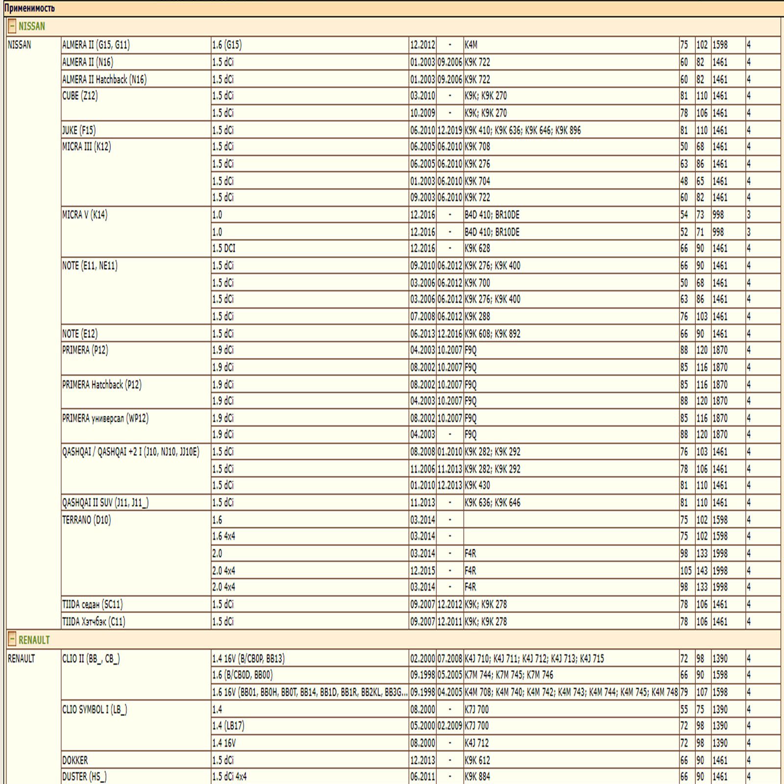 ОЕ: 4415442; 93181255; 93198441; 2811800310; A2811800310; M883804; 1520800Q0D; 1520800Q0G; 1520800QAF; 15208AW300; 1651084A10; 4415442; 4434962; 93181255; 8200274858; 8200768927; 8200769827; 8200867980; 8671002274; 8671017369; 1651067JG0; 1651067JG0000; 1651084A10; 1651084A10000; 1651084A11; 1651084A11000; 1651084A12; 1651084A12000; 7700274177; 6001543357; 7700272523; 7700272902; 7700272903; 7700272982; 7700274177; 7700856114; 7700871919