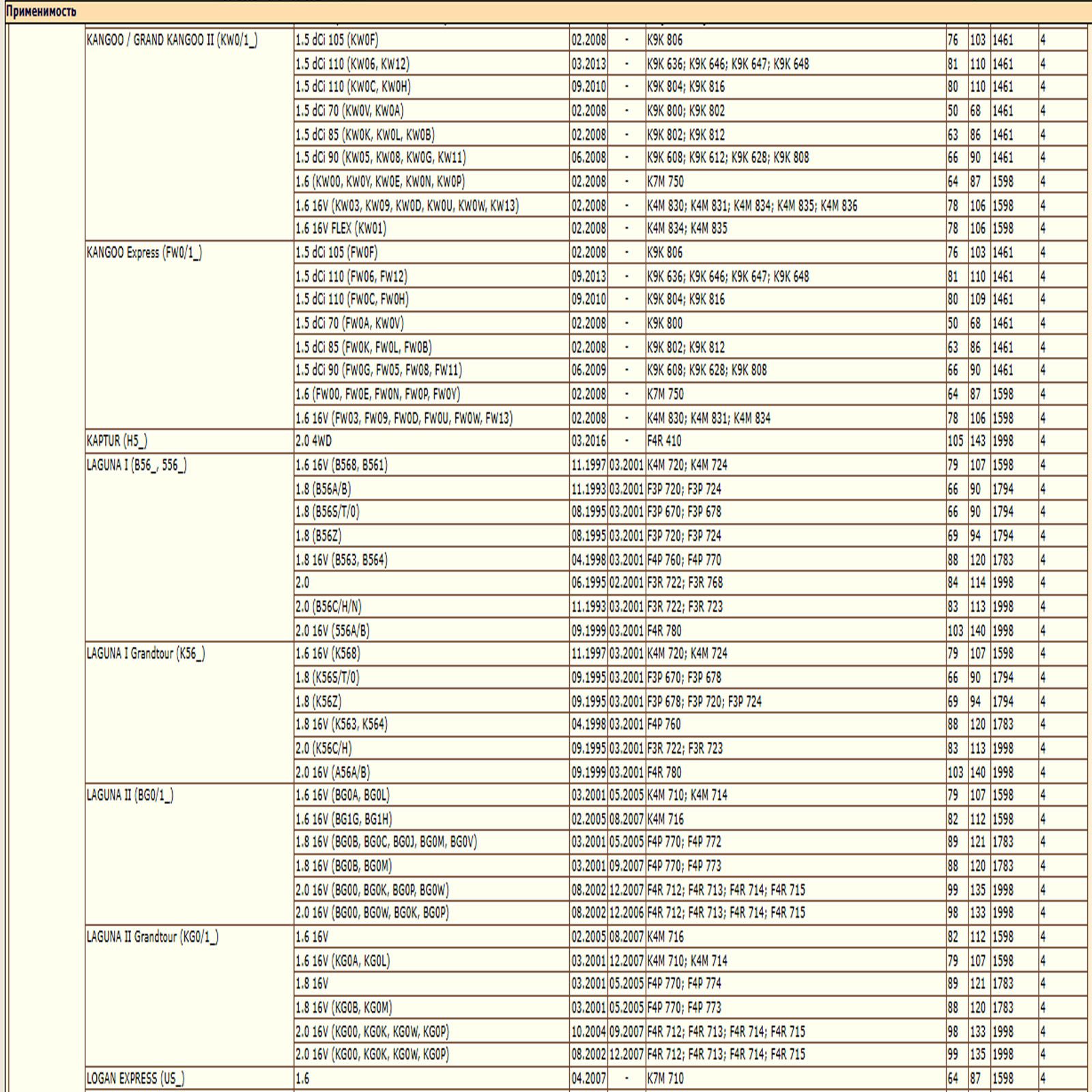 ✔ RENAULT CLIO II (BB, CB), DUSTER (HS_),ESPACE III, ESPACE IV, FLUENCE (L3_), GRAND SCENIC II, GRAND SCENIC III, KANGOO , KAPTUR , LAGUNA, LOGAN I, MEGANE I, MEGANE II, MEGANE III, SANDERO/STEPWAY I (BS_), SANDERO/STEPWAY II (B8_), SCENIC II, SCENIC III