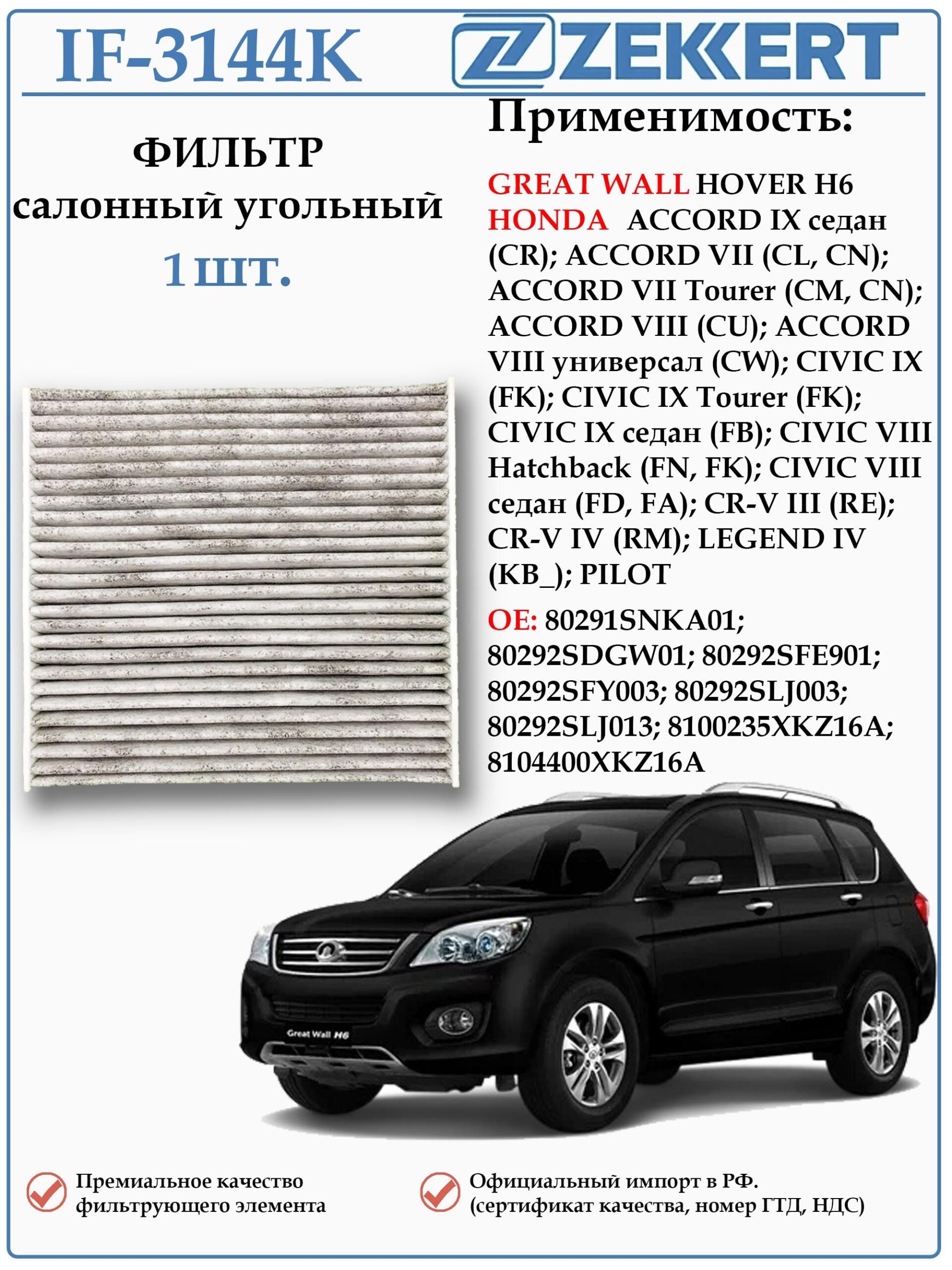 Фильтр 80292SDAA01/LT087 применяется для Хонда Пилот, Хонда Аккорд, Хонда Цивик, CR-V, Грейт Вол Ховер Н6