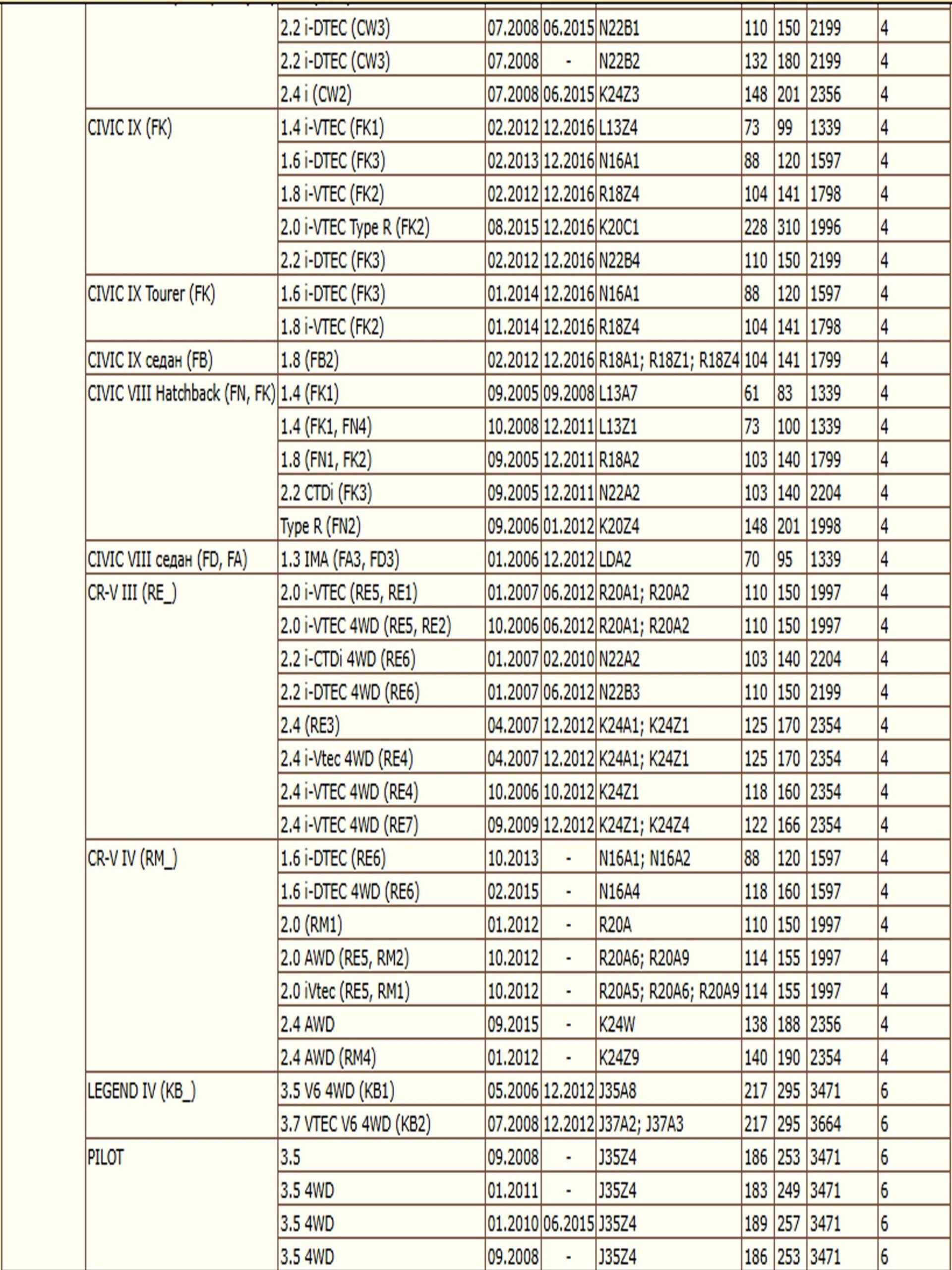 ✔ HONDA ACCORD IX (CR), VII (CL, CN), VIII (CU), (CW),