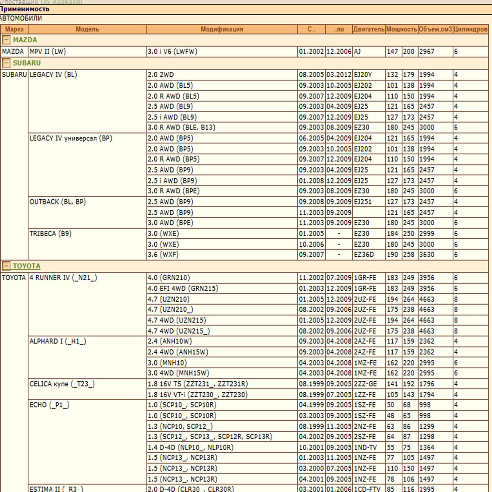✔ TOYOTA 4 RUNNER IV (_N21_); ALPHARD I (_H1_); CELICA купе (_T23_); ECHO (_P1_); ESTIMA II (_R3_); FJ CRUISER (GSJ1_); HARRIER (_U3_); HILUX VII Пикап (_N1_, _N2_, _N3_); IPSUM (_M2_); LAND CRUISER PRADO (_J12_); NOAH/VOXY (_R6_); OPA (ZCT1_, ACT1_); PRIUS Liftback (_W2_); SIENNA (_L2_); SOLARA Кабриолет (_V3_); SOLARA купе (_V3_)