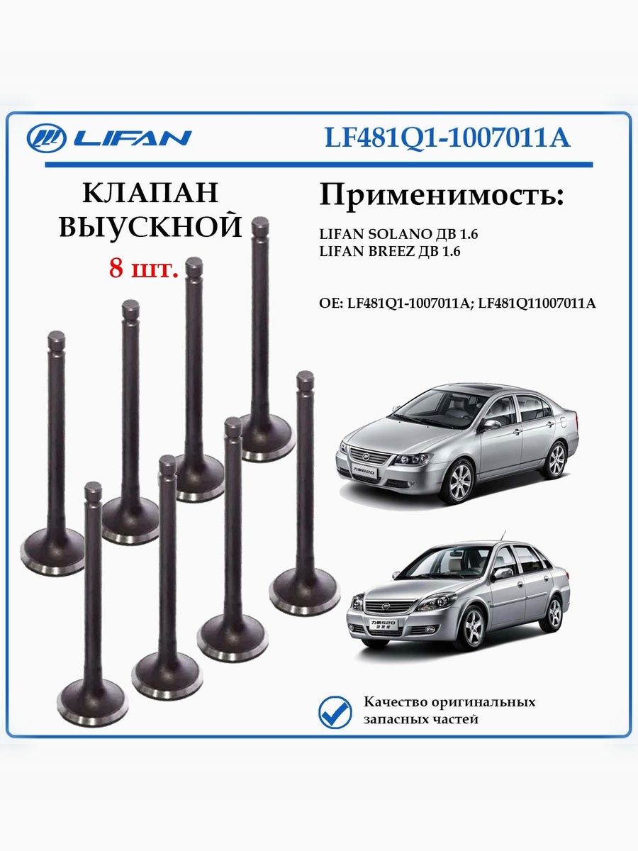 Клапан выпускной лифан солано 1.6 бриз LF481Q1-1007011A 8 шт.