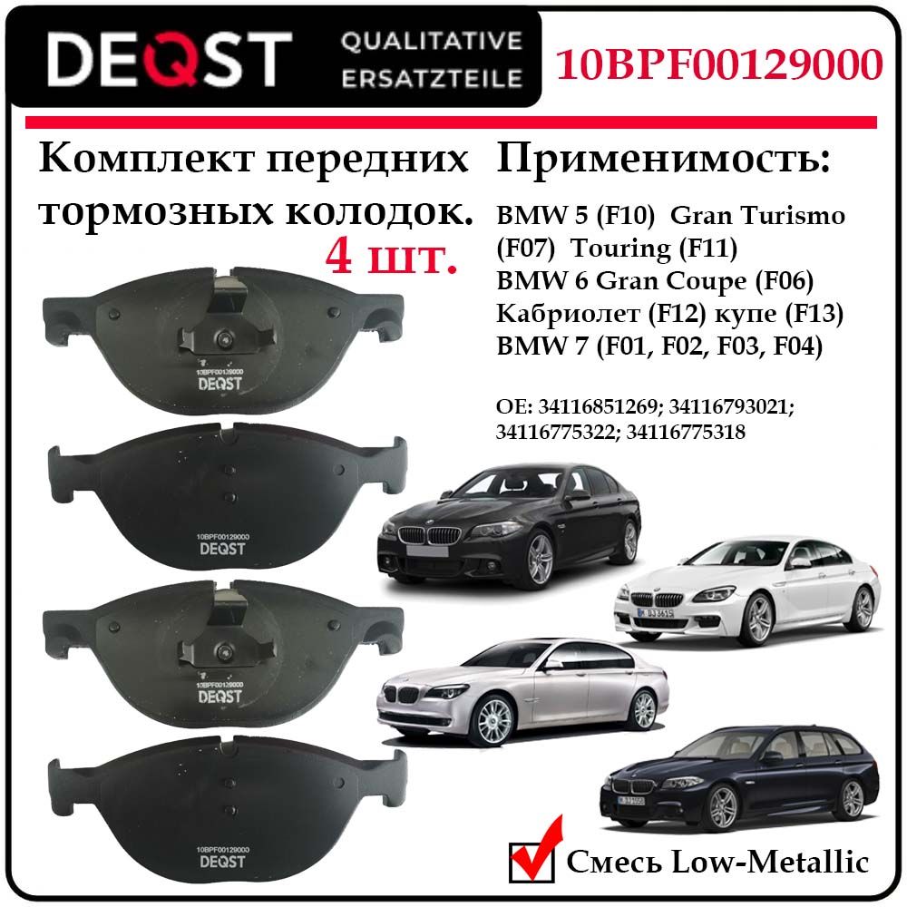 Колодки тормозные передние для БМВ пятой серии F10, F11; БМВ 6 F06, F13; БМВ 7 F01, F02