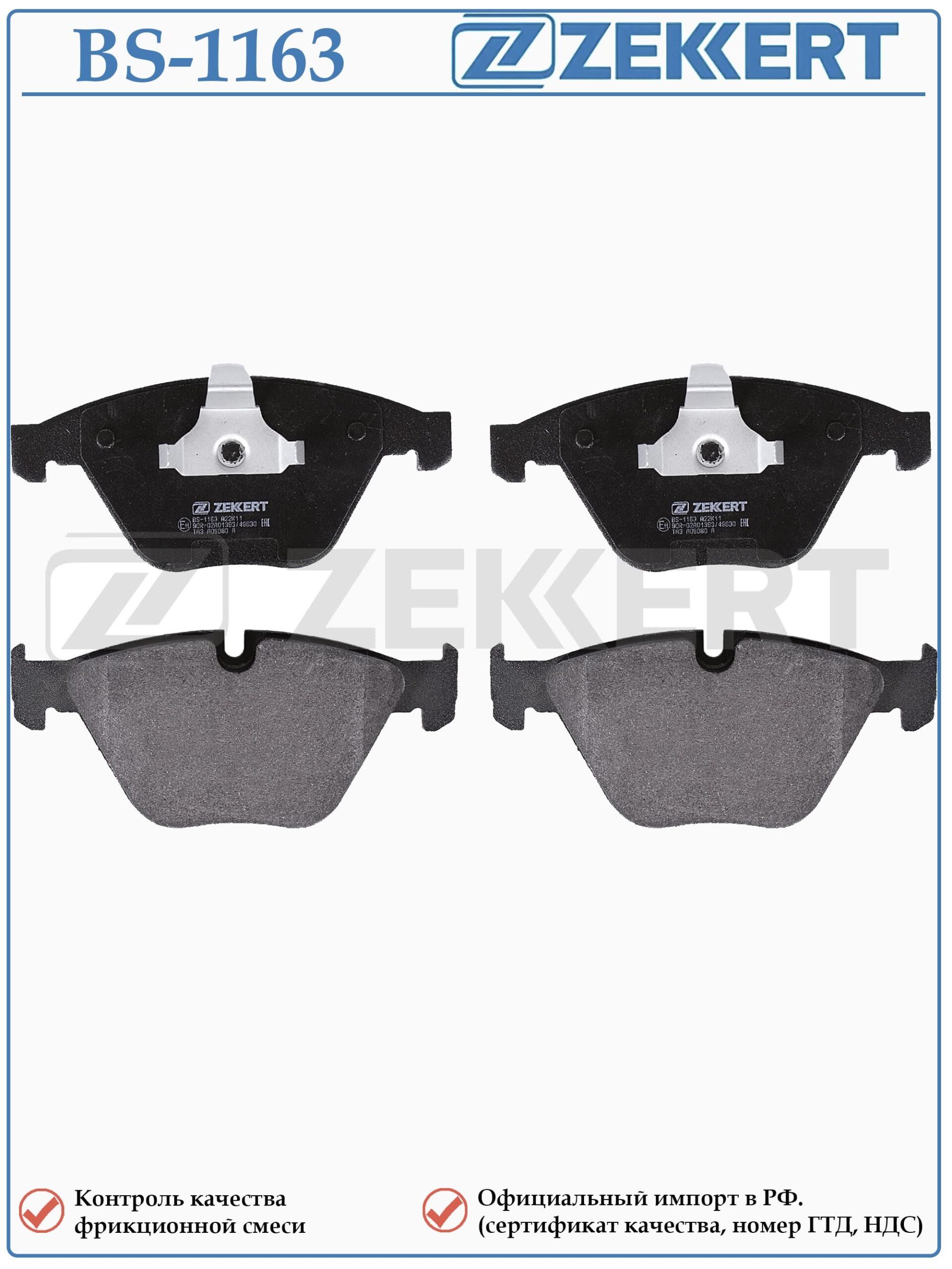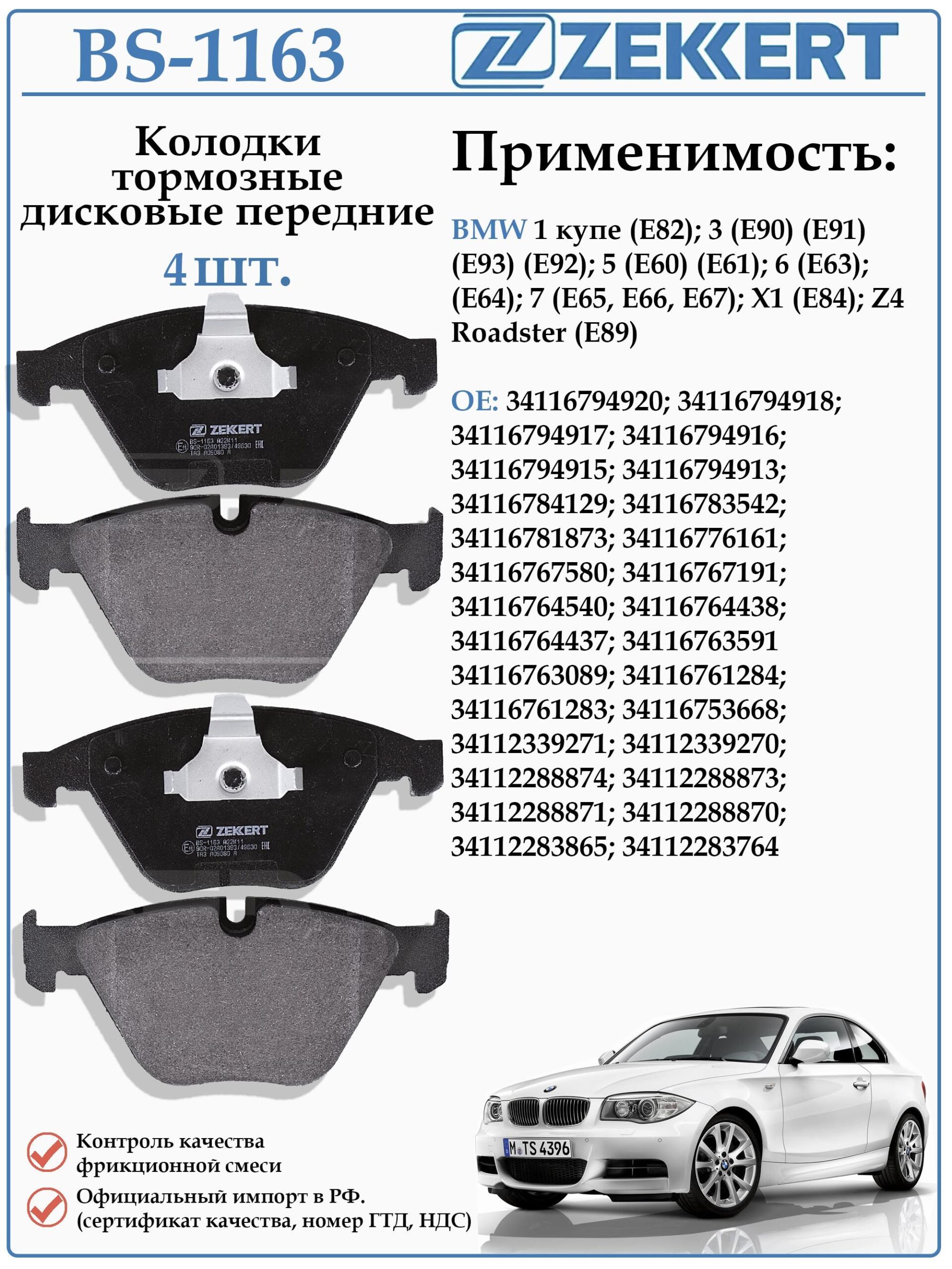 Колодки тормозные передние ZEKKERT BS-1163 для автомобилей БМВ 3 серри в кузове Е90, БМВ Х1 Е84, БМВ 5 серии в кузове Е60