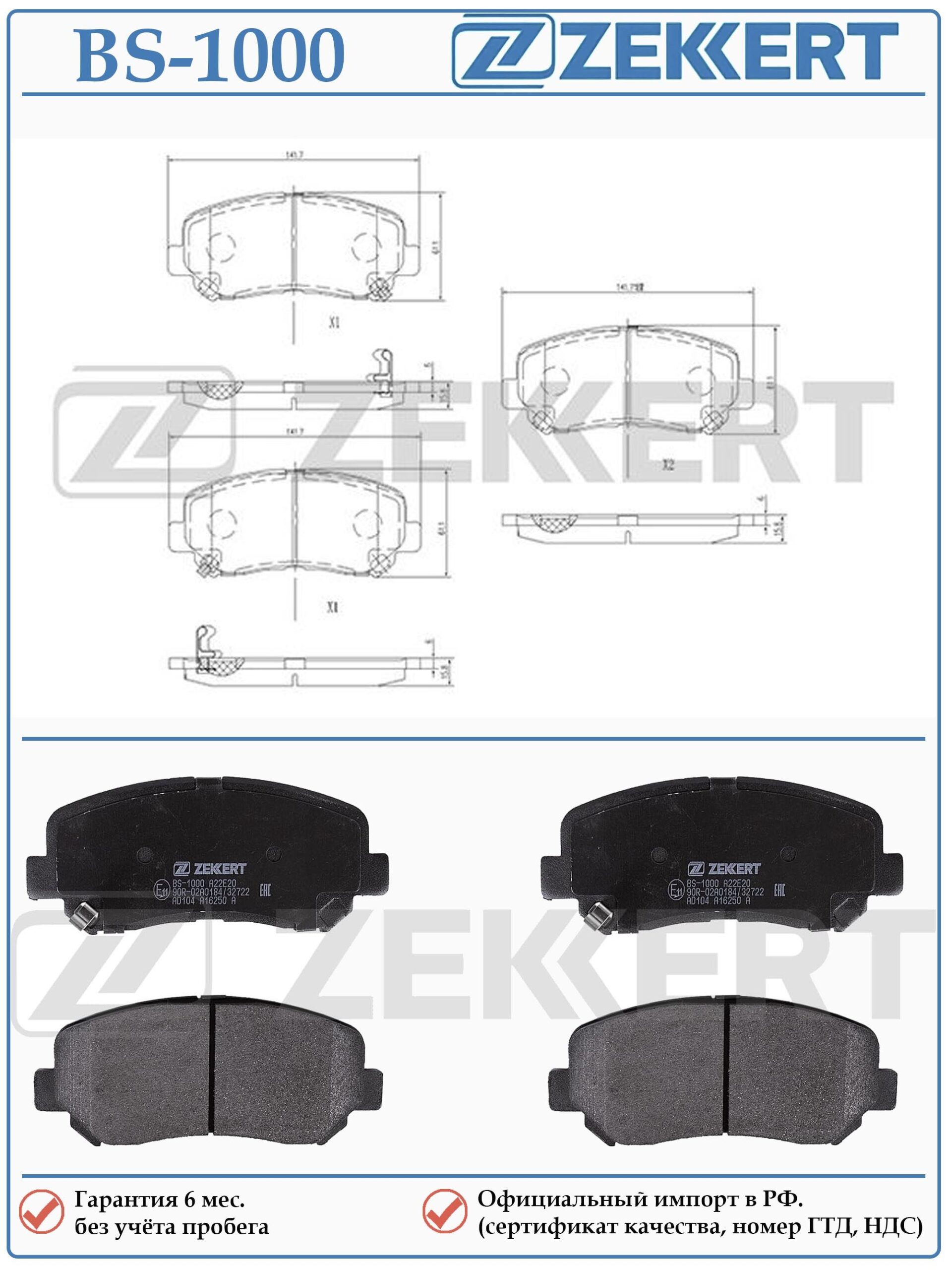 Колодки тормозные, дисковые передние для Мазда CX-5 ZEKKERT BS-1000