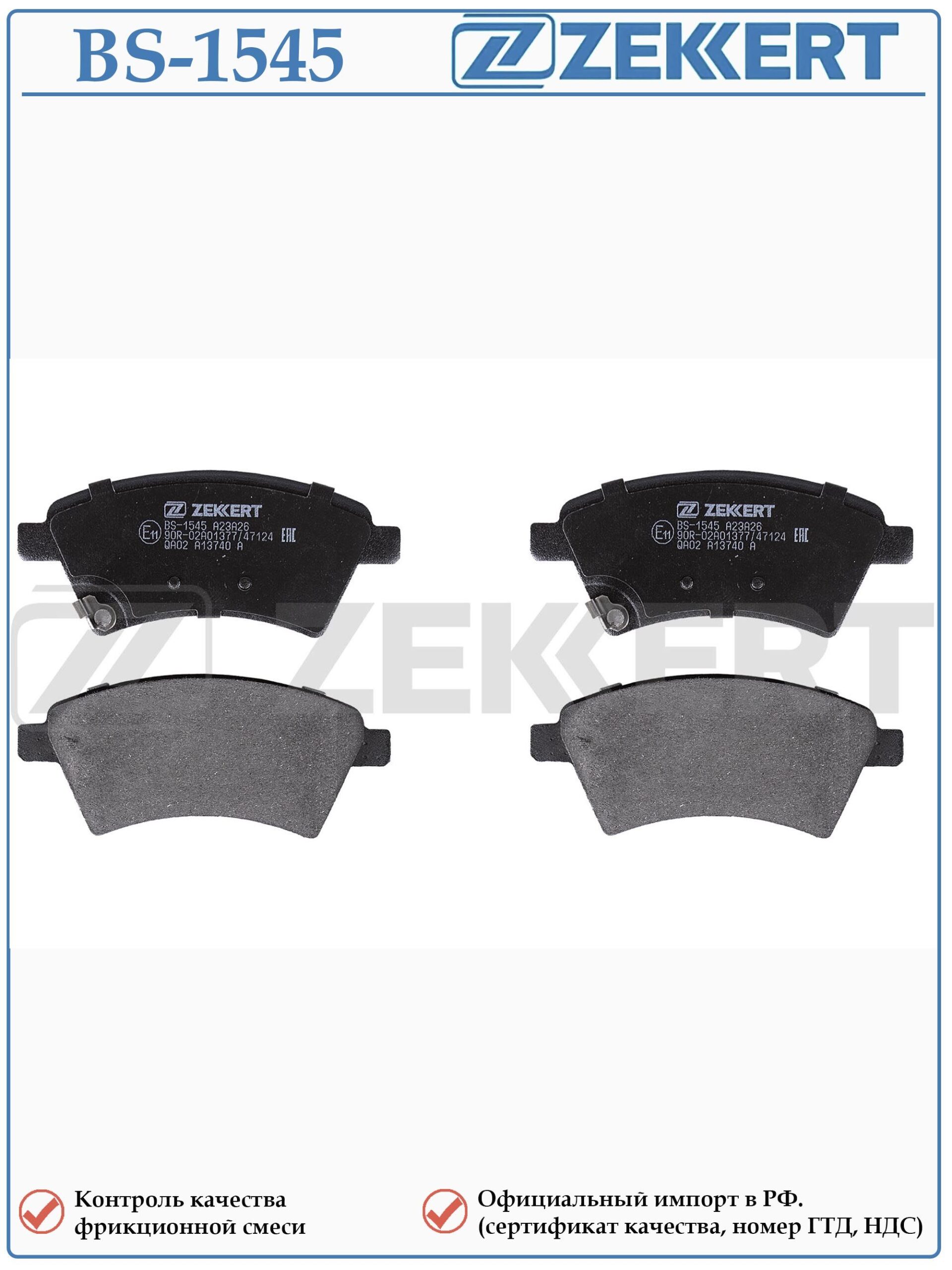 Колодки тормозные передние ZEKKERT BS-1545 для автомобилей Сузуки SX4