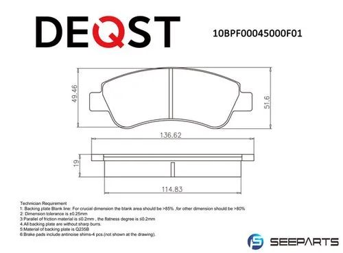 Колодки тормозные передние дисковые Deqst