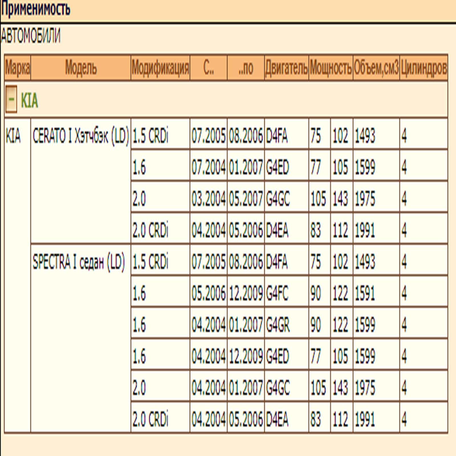 ✔ KIA CERATO I Хэтчбэк (LD)