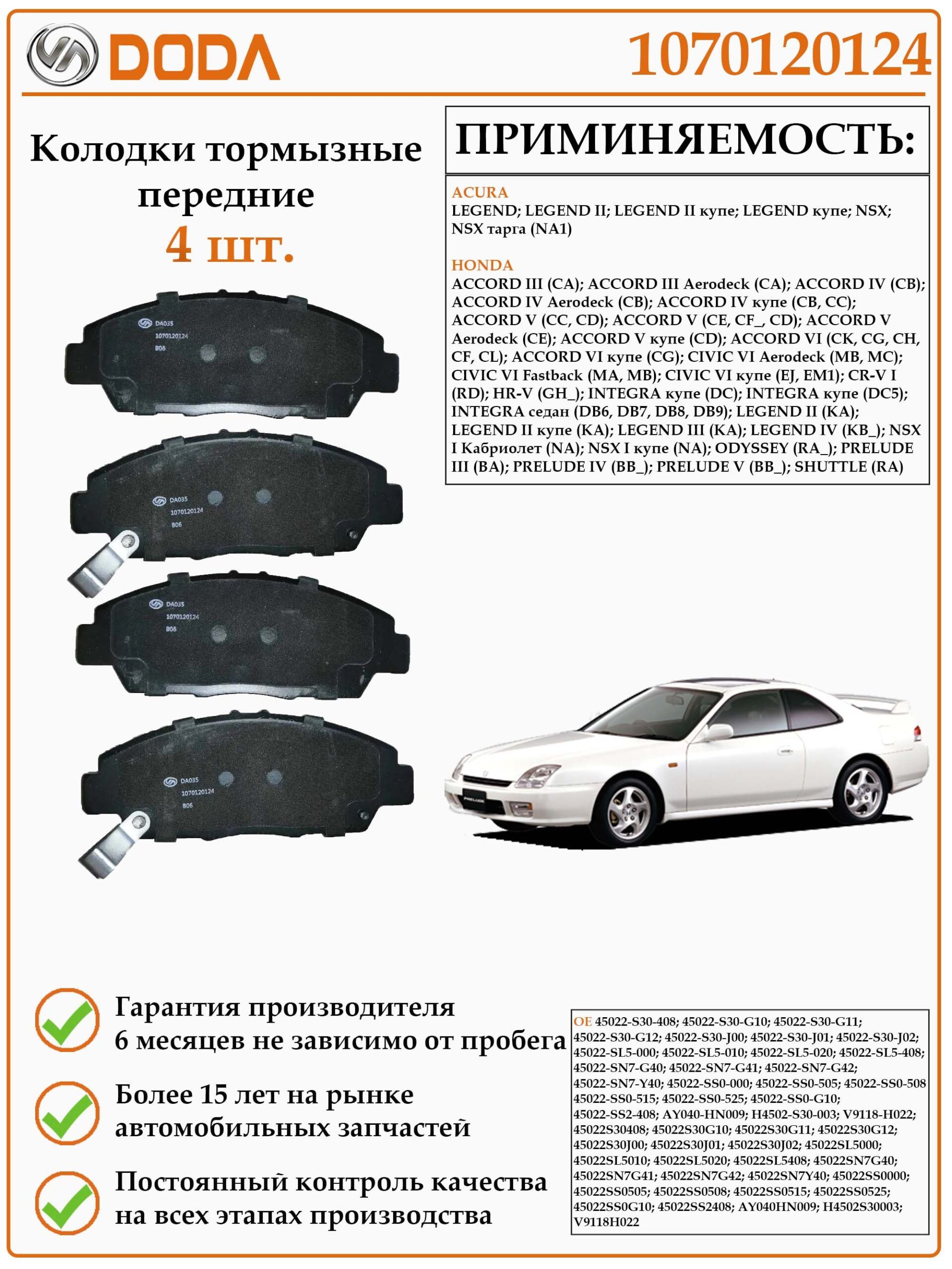 Колодки тормозные передние дисковые DODA