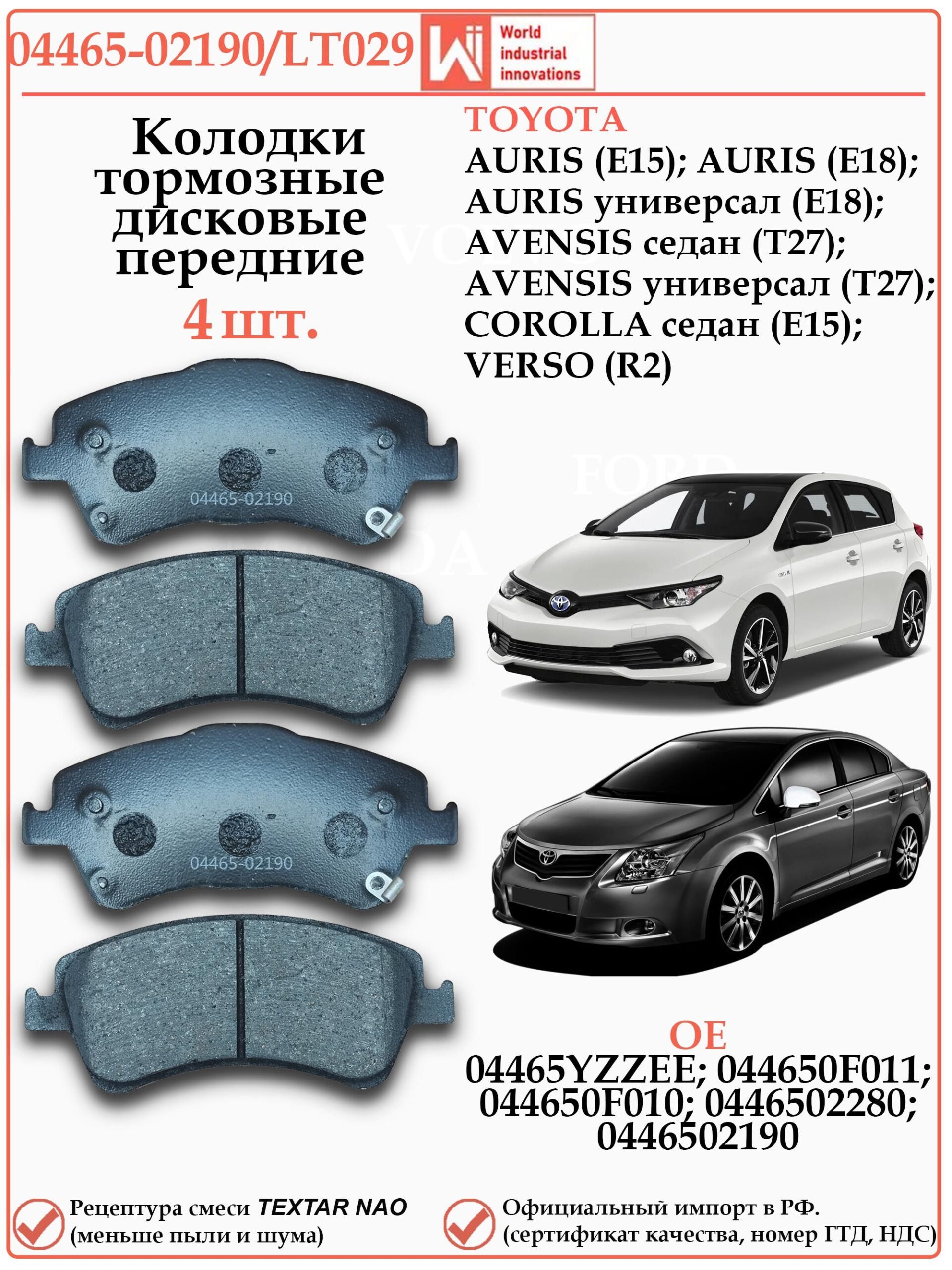 Колодки тормозные передние WII AUTO 04465-02190/LT029 для Тойота Королла, Тойота Авенсис, Тойота Аурис