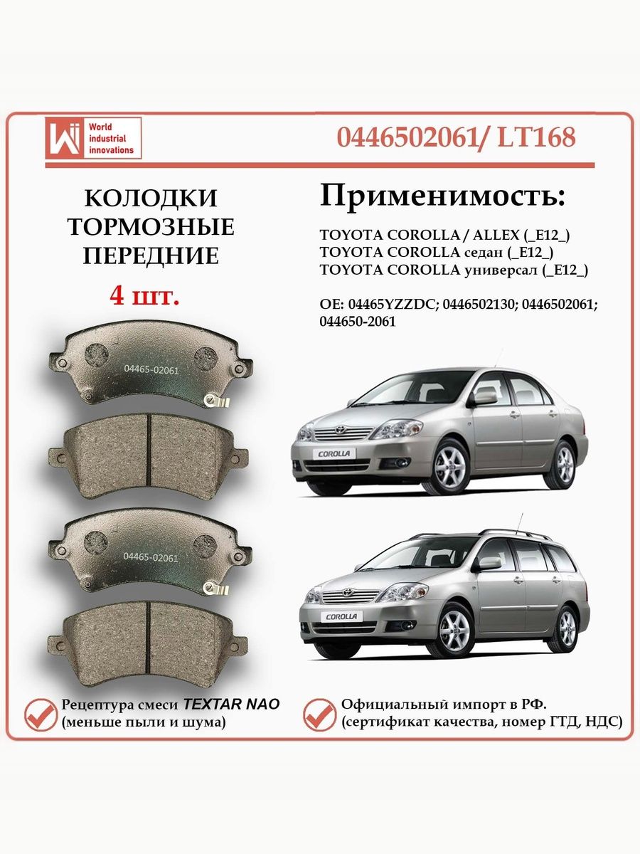 Колодки тормозные передние WII AUTO 0446502061/LT168 для Тойота Королла E 12_