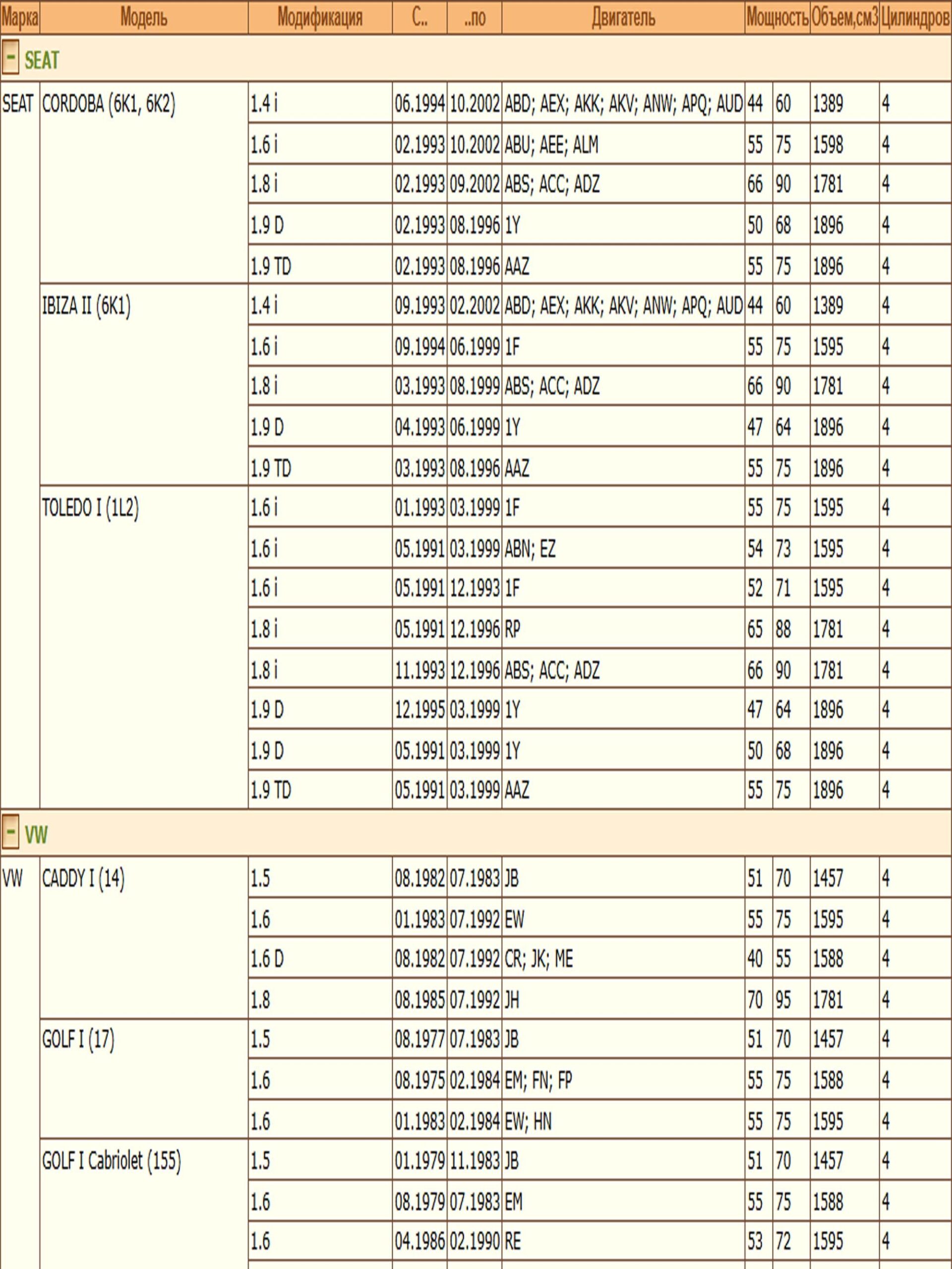 ✔ SEAT CORDOBA (6K1, 6K2)
