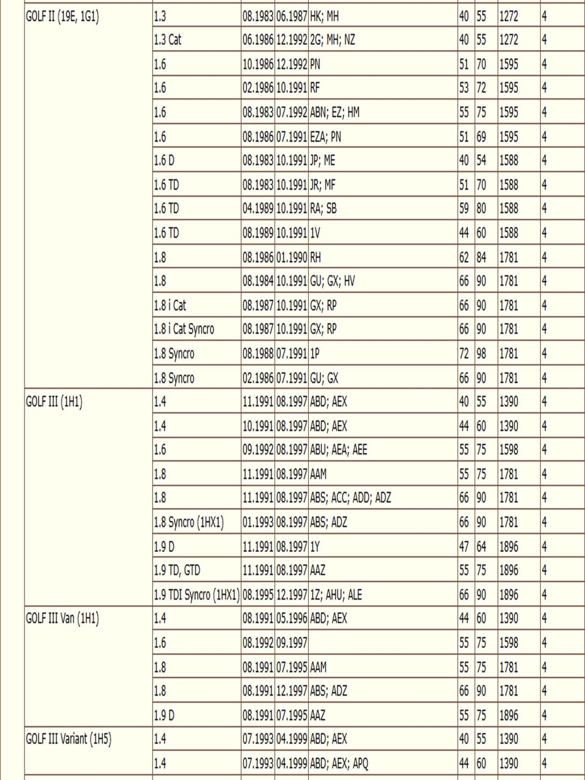 ✔ VW GOLF II (19E, 1G1)