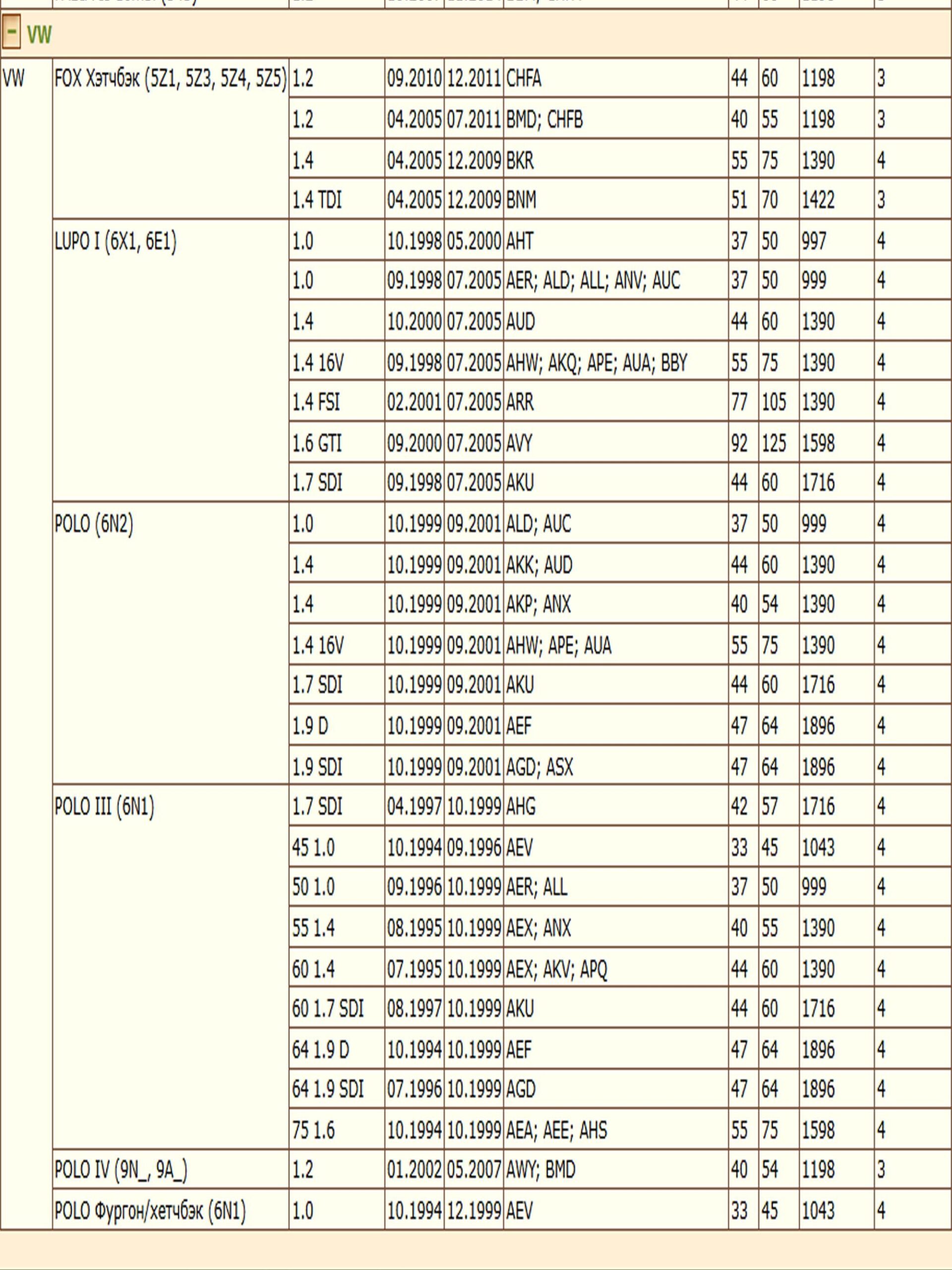 ✔ VW FOX (5Z1, 5Z3, 5Z4, 5Z5)