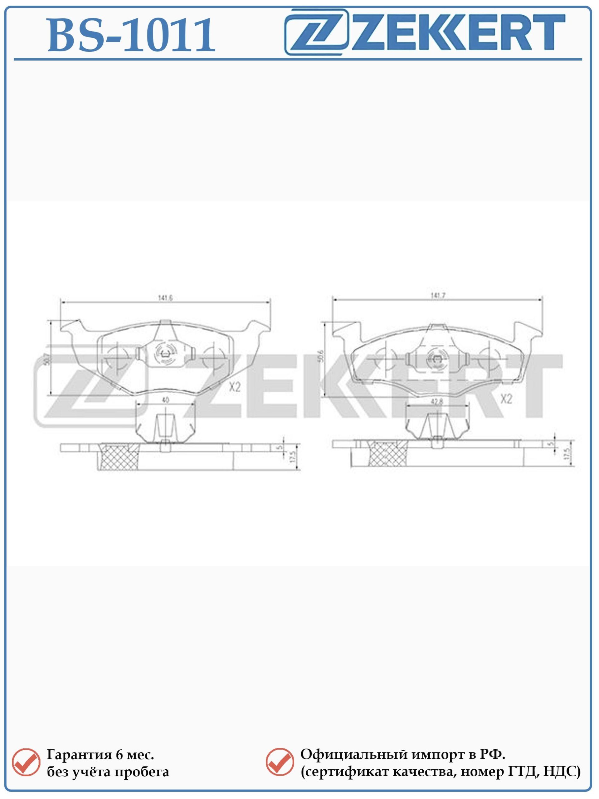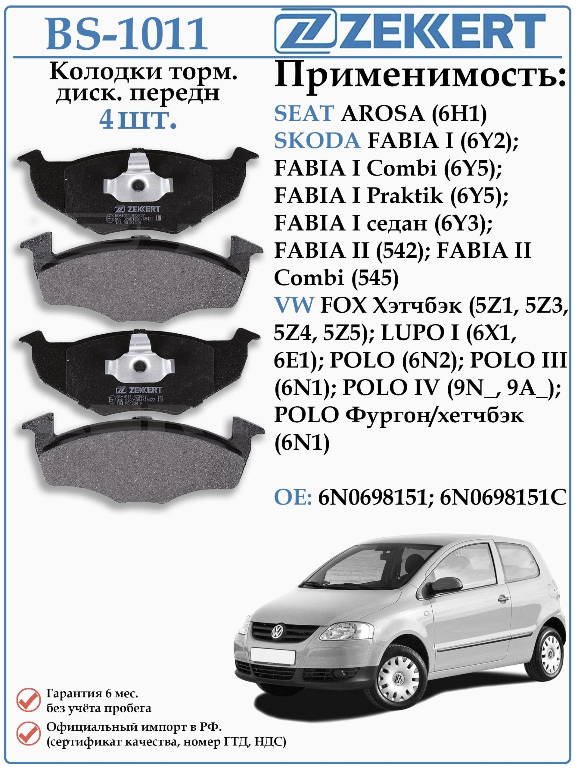 Колодки тормозные передние ZEKKERT BS-1011 для