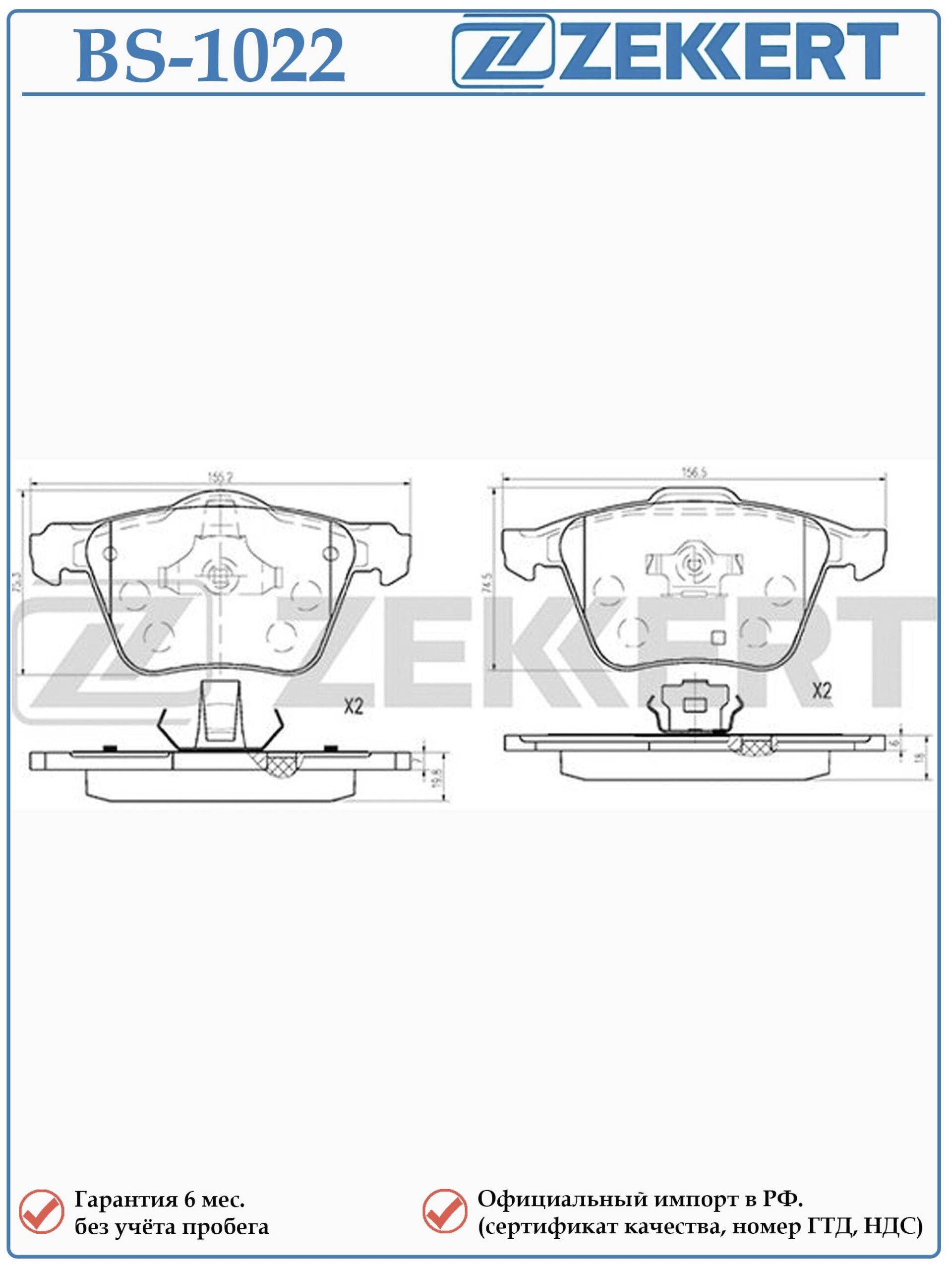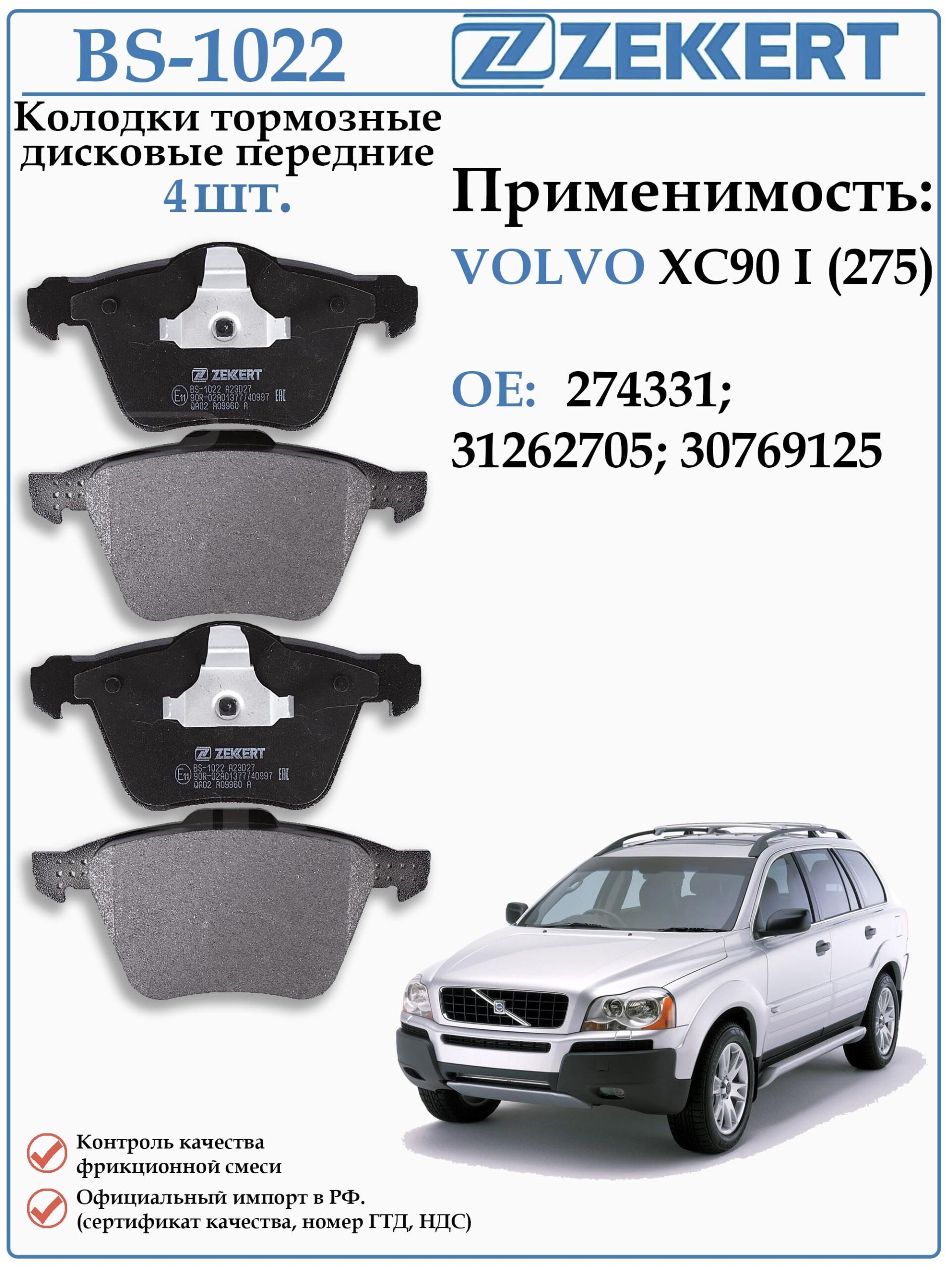 Колодки тормозные передние ZEKKERT BS-1022 для Вольво ХС 90 первого поколения