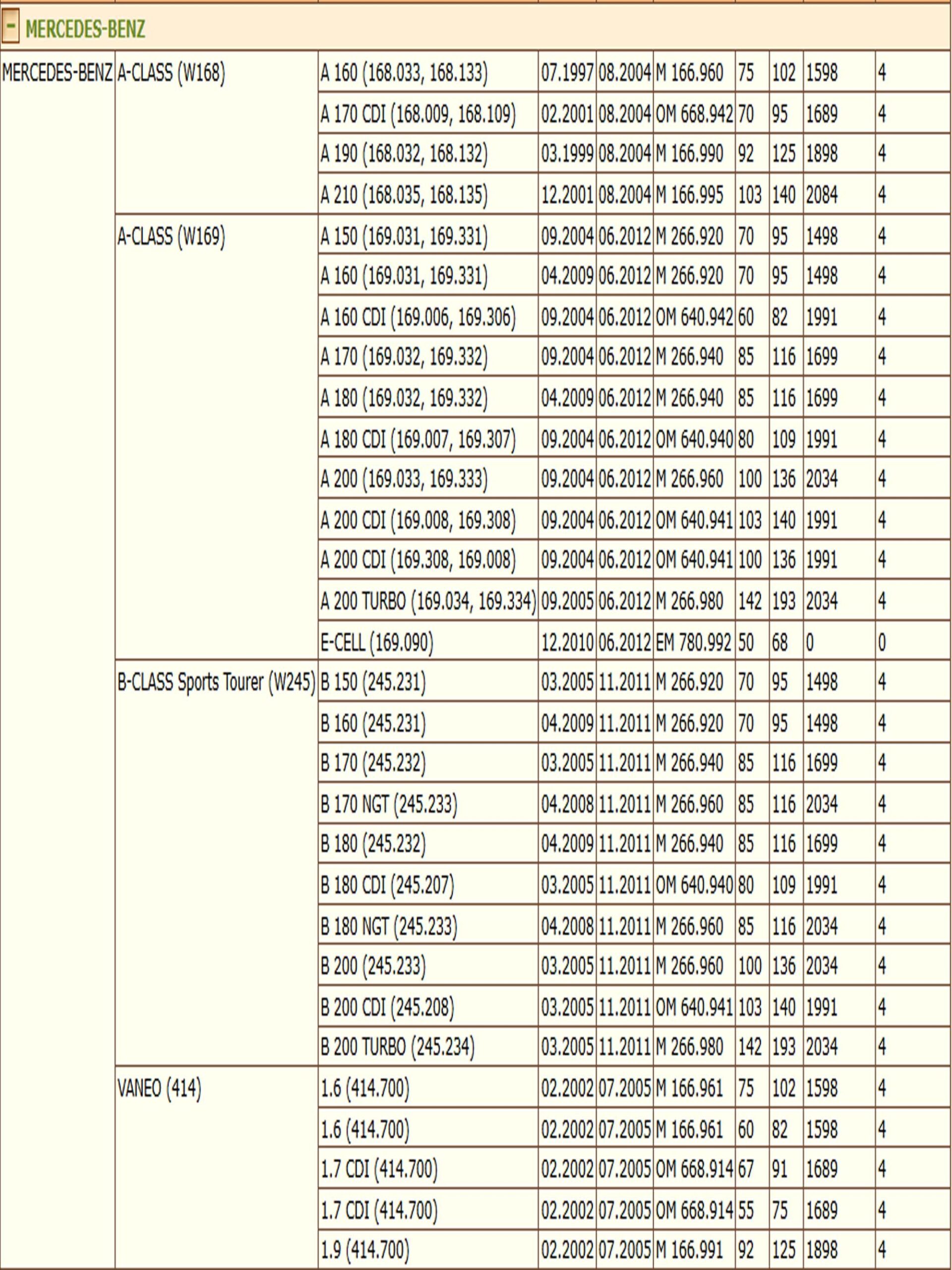 ✔ MERCEDES-BENZ A-CLASS (W168) (W169)