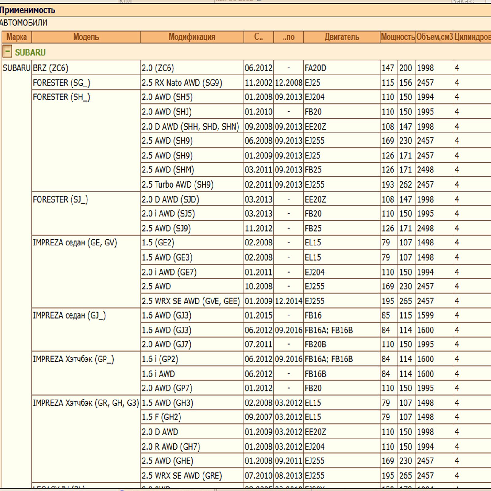 ✔  SUBARU IMPREZA седан (GE, GV)