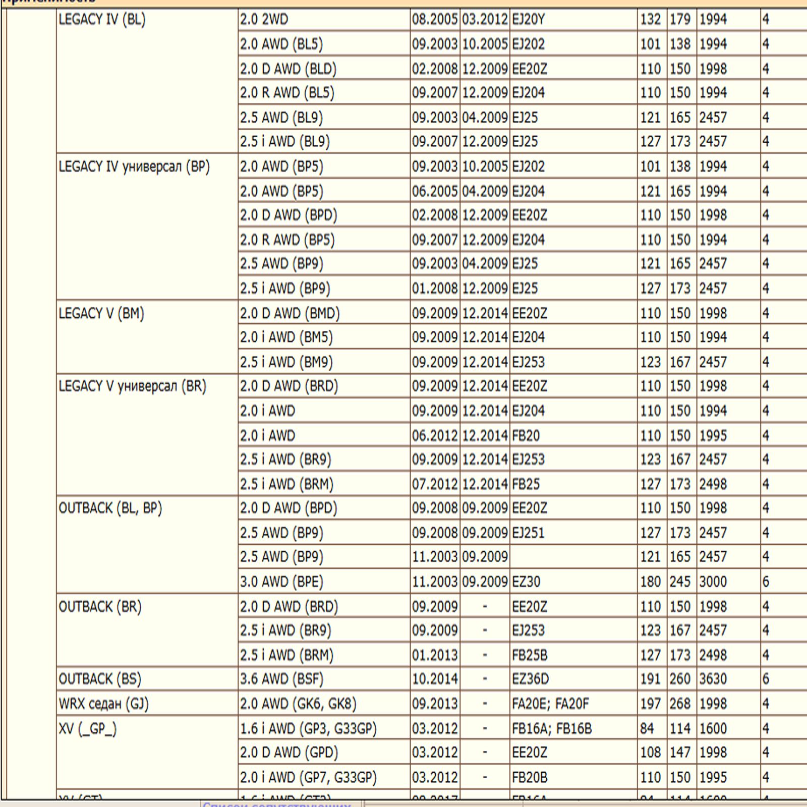 ✔  SUBARU OUTBACK (BL, BP) (BR) (BS)
