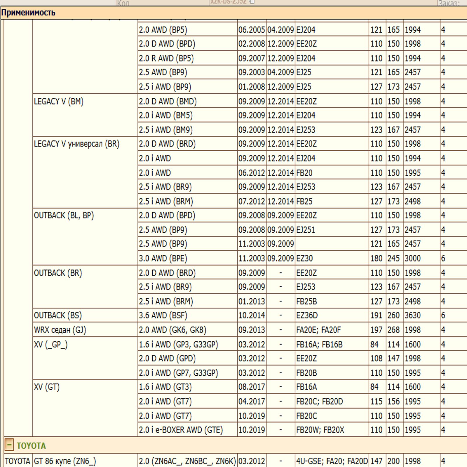 ✔  SUBARU LEGACY V (BM) (BR)