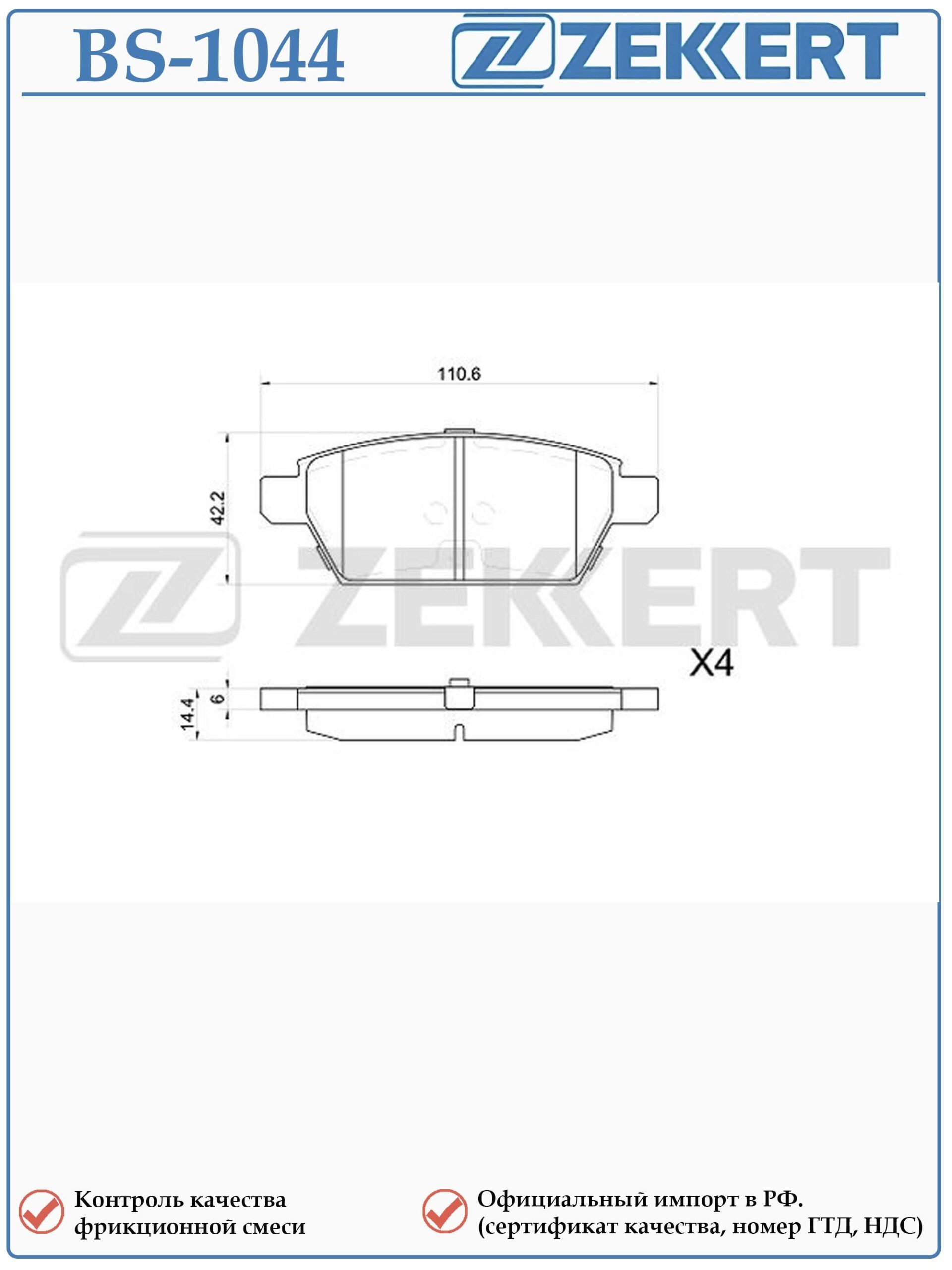 Колодки тормозные задние ZEKKERT BS-1044 для Мазда 6