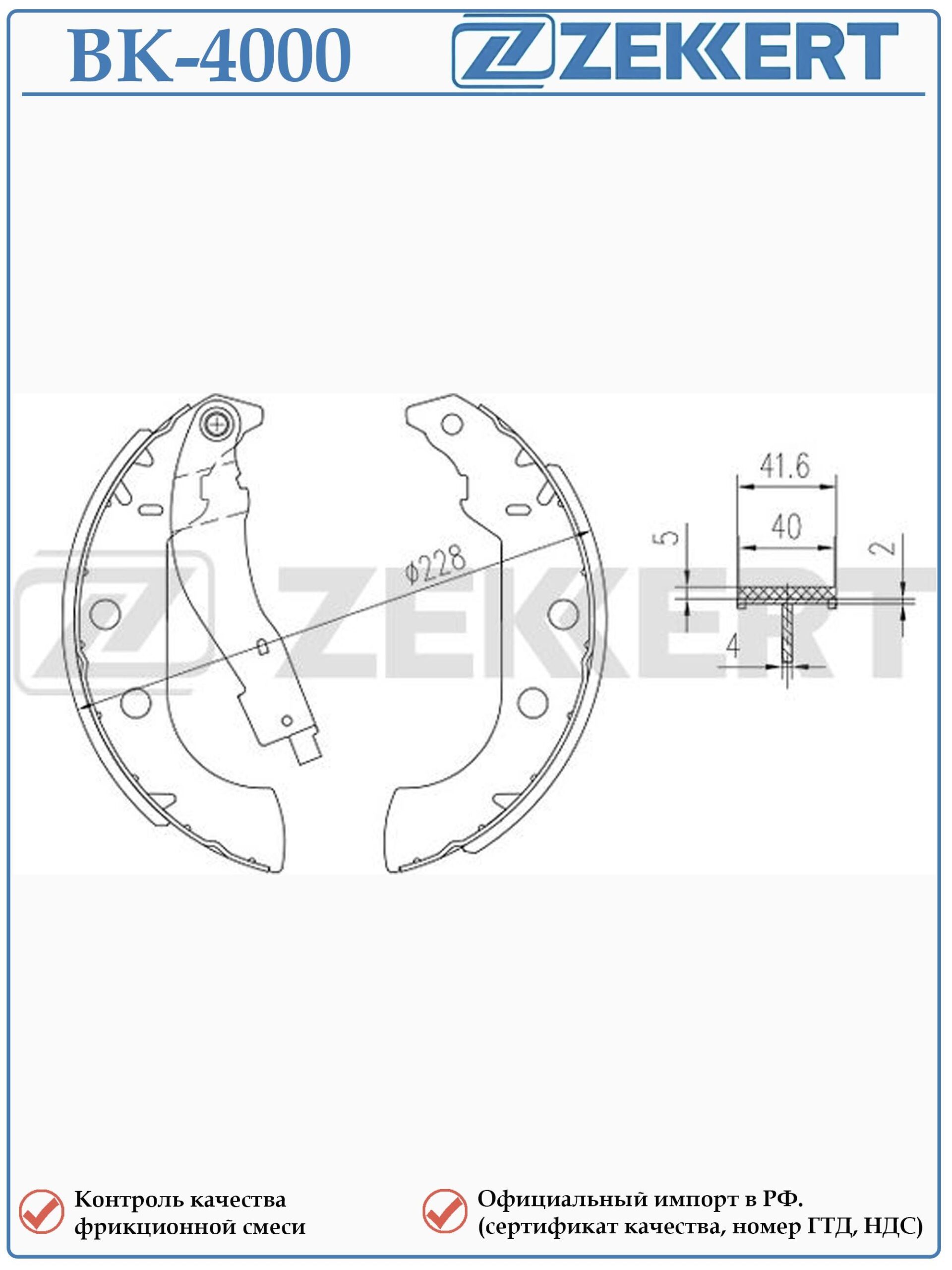 Колодки тормозные задние барабанные ZEKKERT BK-4000 для Ситроен Ксара, ZX, Пежо 306, 405