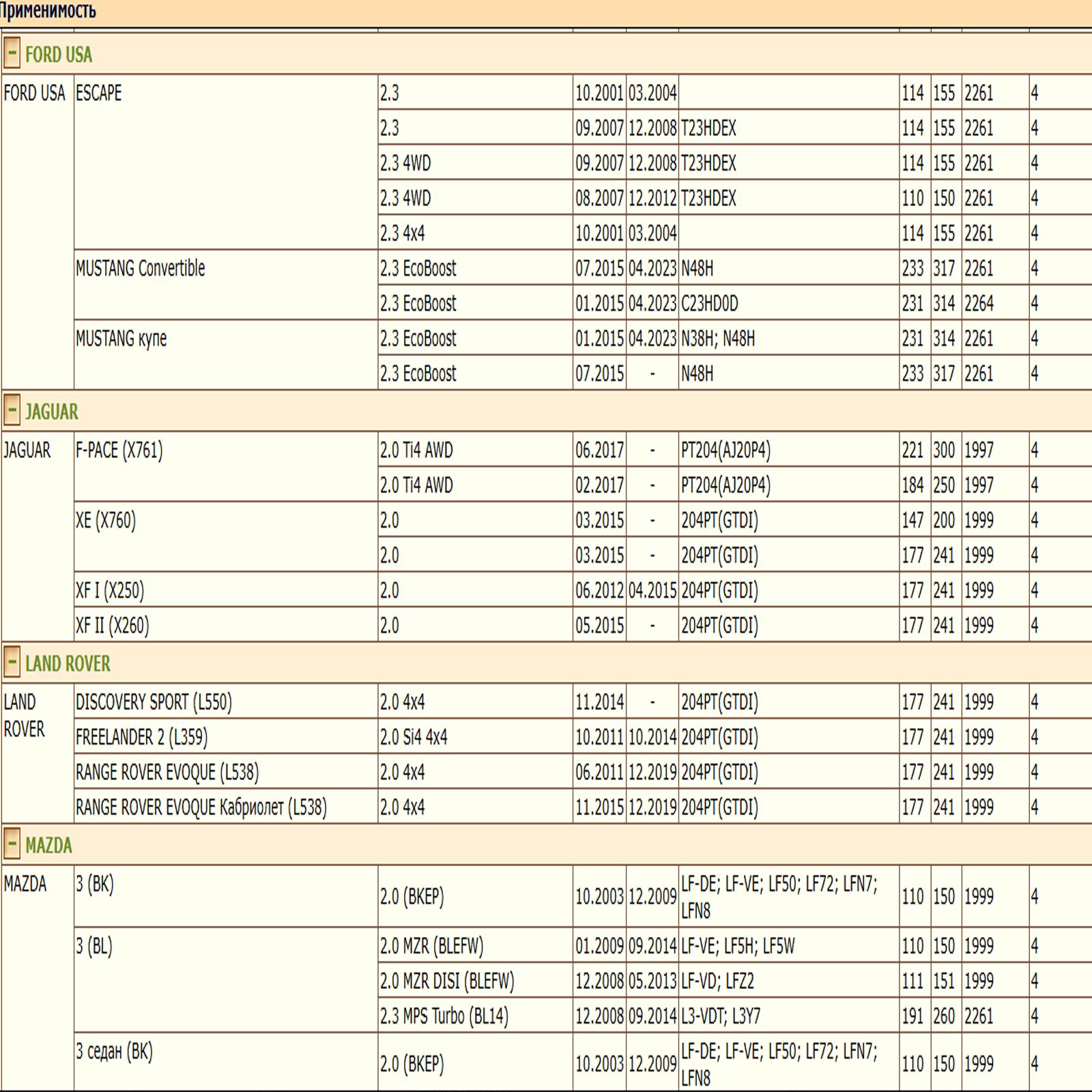 ОЕ 1218846; 1250507; 1595247; 1751529; 5015485; 5097737; 7S7Z6731A; 7S7Z6731B; BE8Z6731A; 1S7E6714BA; 1S7G6714CA; 1S7G6714DA; 1S7Z6731DA; AU2J6731AA; BE8Z6731AB; C2Z21964; C2Z32125; LF0514302; LF1014302; LF8J14302; LFY114302; SHY114302; LF0514302A; LF0514302B; LF1014302A; SH0114302A; LF10143029A; LF10143029B; LF1014302A9B; SH0114302A9A; 15208HA00A; 15208HA00B; 15208HA00F; AY100MA007; 30711781; 30731880; 31330049; 31330050; LR025306; LR096524