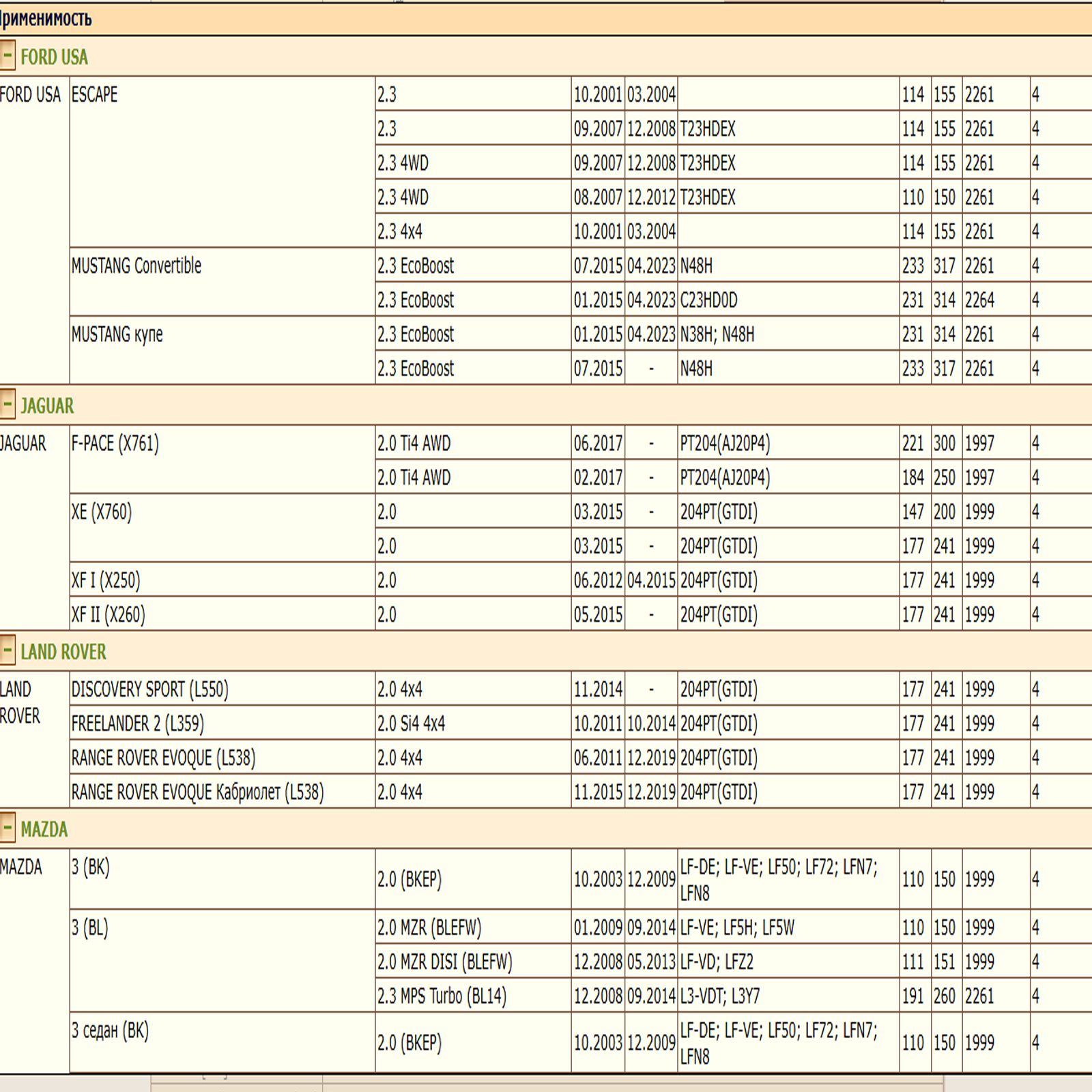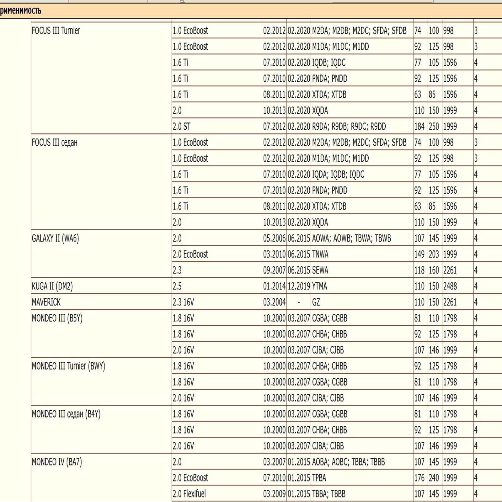 ОЕ 1218846; 1250507; 1595247; 1751529; 5015485; 50977370; 7S7Z6731A; 7S7Z6731B; BE8Z6731A; 1S7E6714BA; 1S7G6714CA; 1S7G6714DA; 1S7Z6731DA; AU2J6731AA; BE8Z6731AB; C2Z21964; C2Z32125; LF0514302; LF1014302; LF8J14302; LFY114302; SHY114302; LF0514302A; LF0514302B; LF1014302A; SH0114302A; LF10143029A; LF10143029B; LF1014302A9B; SH0114302A9A; 15208HA00A; 15208HA00B; 15208HA00F; AY100MA007; 30711781; 30731880; 31330049; 31330050; LR025306; LR096524