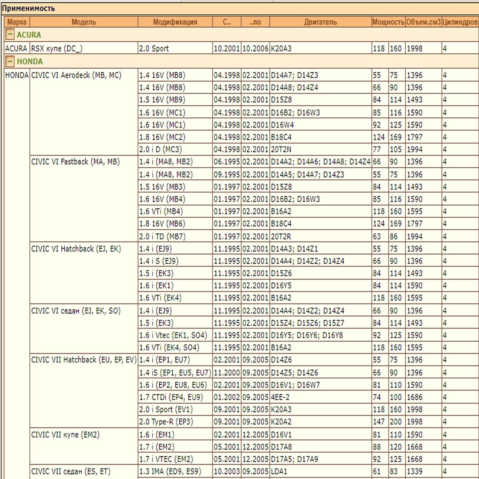 Подходит для автомобилей Хонда цивик шестого, седьмого и восьмого поколений, Хонда CR-V второго поколения, а также для Акуры RSX купе