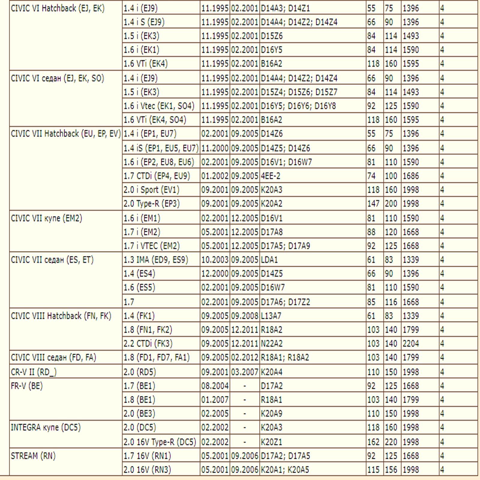 ✔ HONDA  CIVIC VII (EU, EP, EV, EM2, ES, ET)
