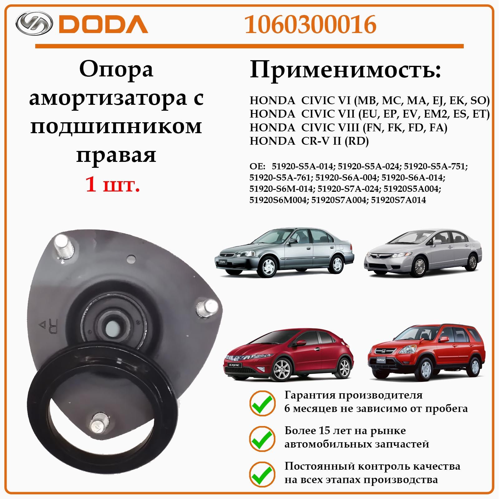 Установка опоры амортизатора с подшипником от DODA — это идеальное решение для тех, кто хочет вернуть своему автомобилю первоначальные ходовые характеристики. Она прекрасно подойдет для автомобилей различных марок, обеспечивая оптимальное сочетание качества и цены. С опорой амортизатора DODA ваш автомобиль будет готов к любым дорожным испытаниям.